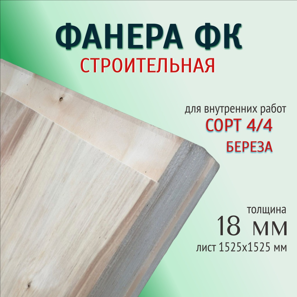 Фанера строительная ФК, сорт 4/4, береза 18х1525x1525 мм, для внутренних работ