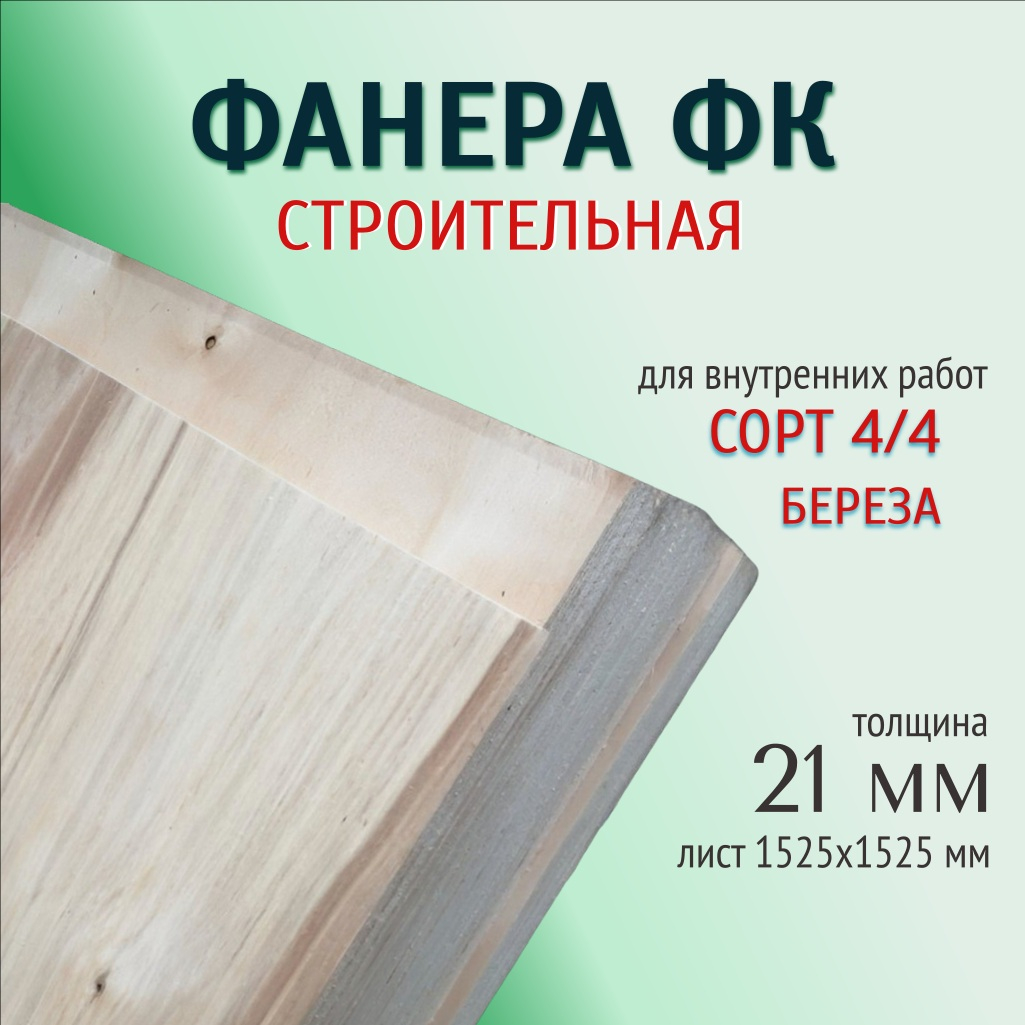 Описание фанеры ФК, сорт 4/4, береза, 21х1525x1525 мм, для внутренних работ