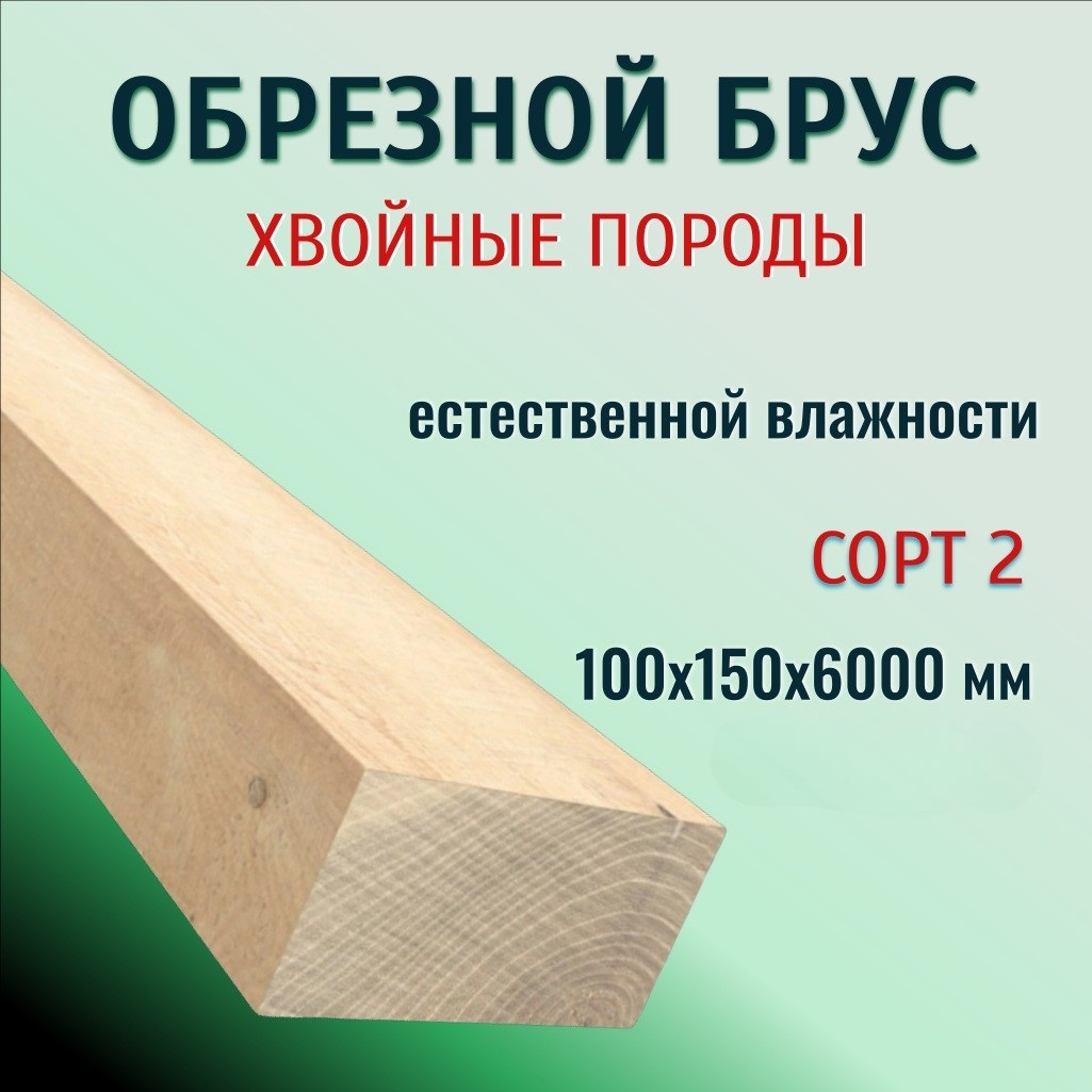 Брус обрезной, сорт 2, Хвойные породы 100х150х6000 мм, естественной влажности