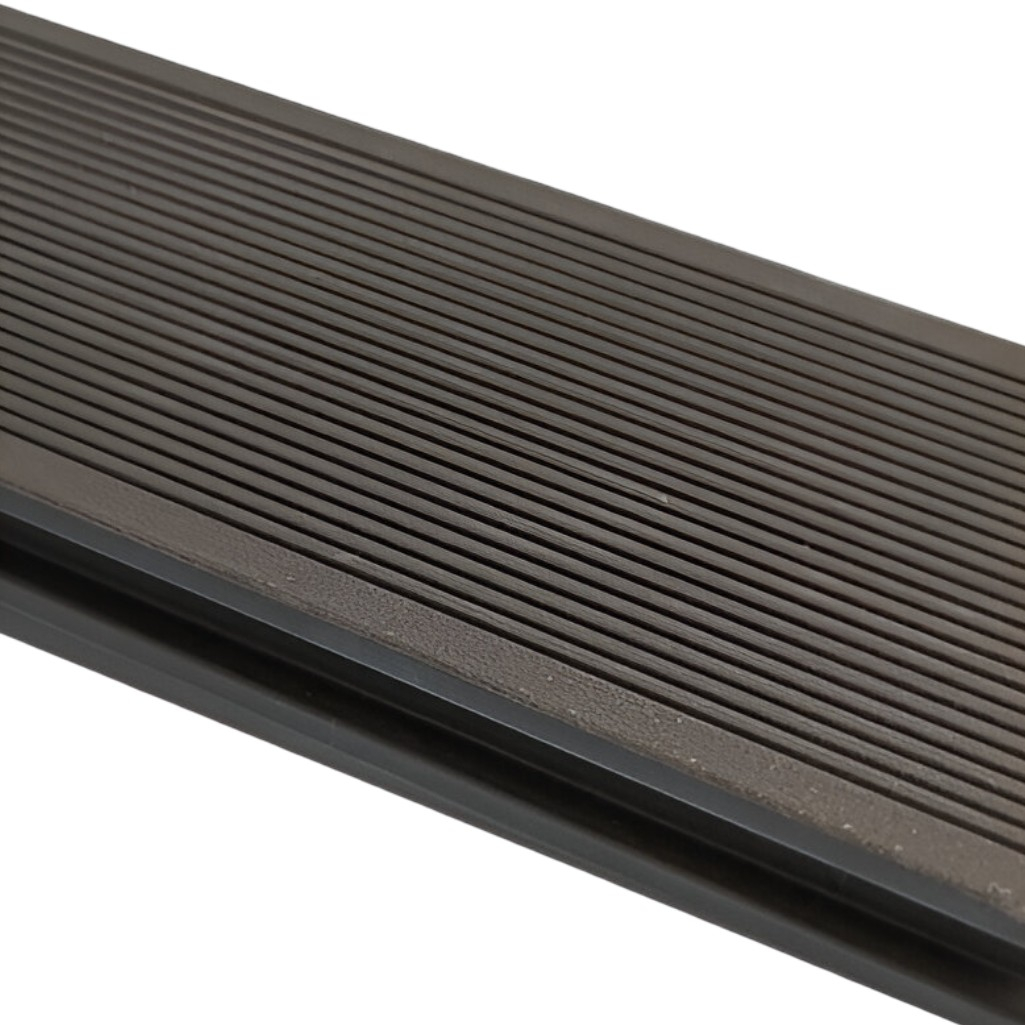 Террасная доска MasterDeck ДПК, 24х140х3000 мм, поверхность Вельвет, Венге предназначена для создания напольного уличного покрытия: настила полов на террасах, строительства причалов для яхт и катеров, укладки вокруг бассейнов и домов, строительстве беседок. Доска для террасы MasterDeck изготовлена из древесно-полимерного композита, который сочетает в себе лучшие свойства древесины и пластика. Она не только эстетична и приятна на ощупь, но и устойчива к воздействию солнечных лучей. Благодаря этому она не требует особого ухода на протяжении всего срока службы, который составляет более 10 лет. Террасную доску можно использовать не только в частных домах, но и в коммерческих целях, например, в кафе, ресторанах, отелях и базах отдыха с высокой проходимостью. Секрет долговечности и неприхотливости доски MasterDeck — в использовании высококачественных материалов. В её состав входят первичный (не переработанный) полиэтилен высокой плотности, древесная мука лиственных пород и другие компоненты, которые были тщательно подобраны. Благодаря этому доска устойчива к различным воздействиям и прослужит долго.