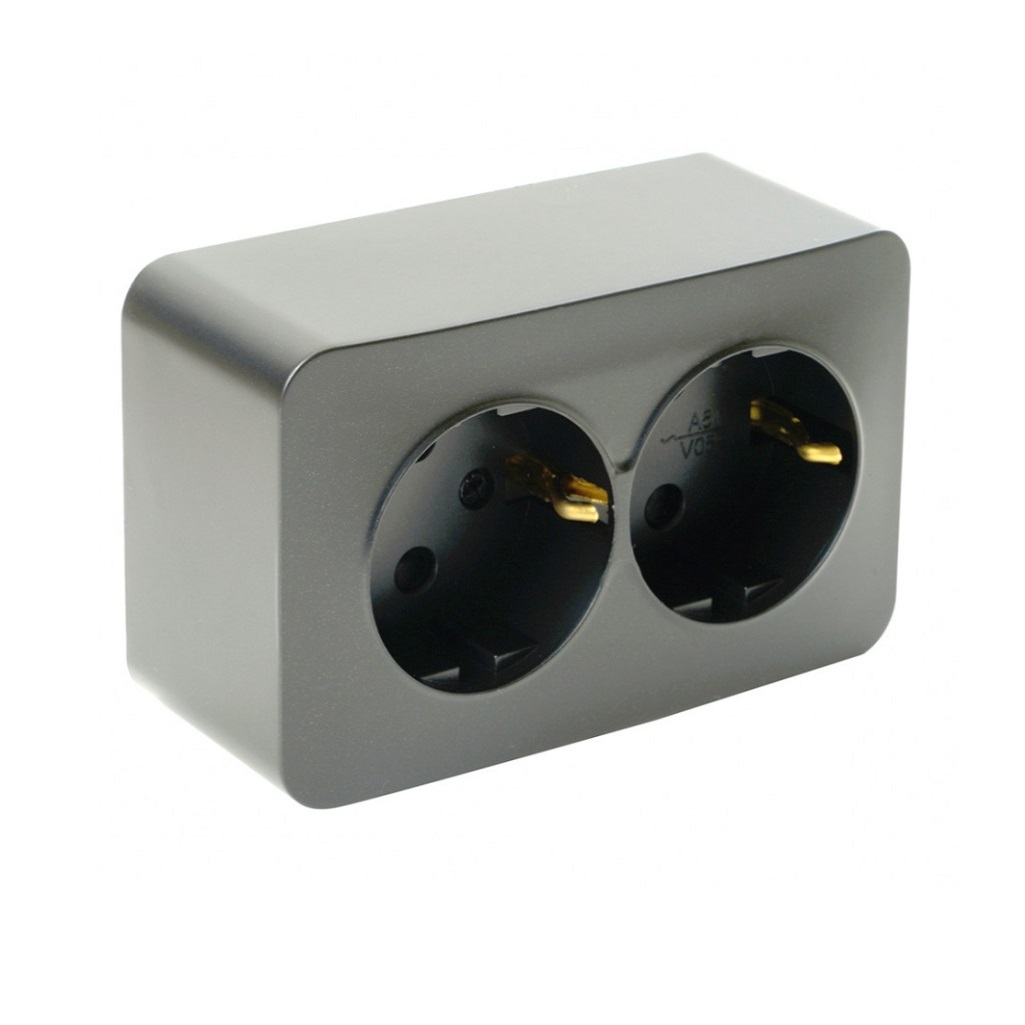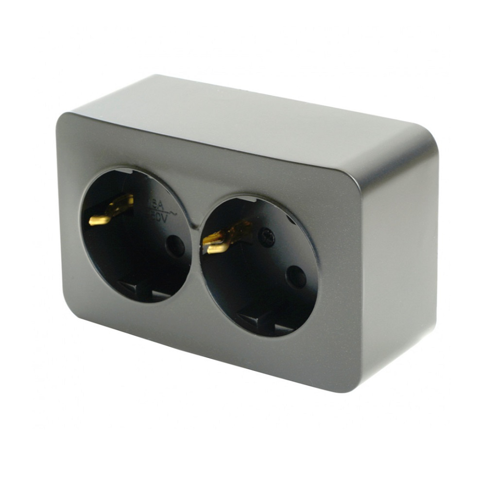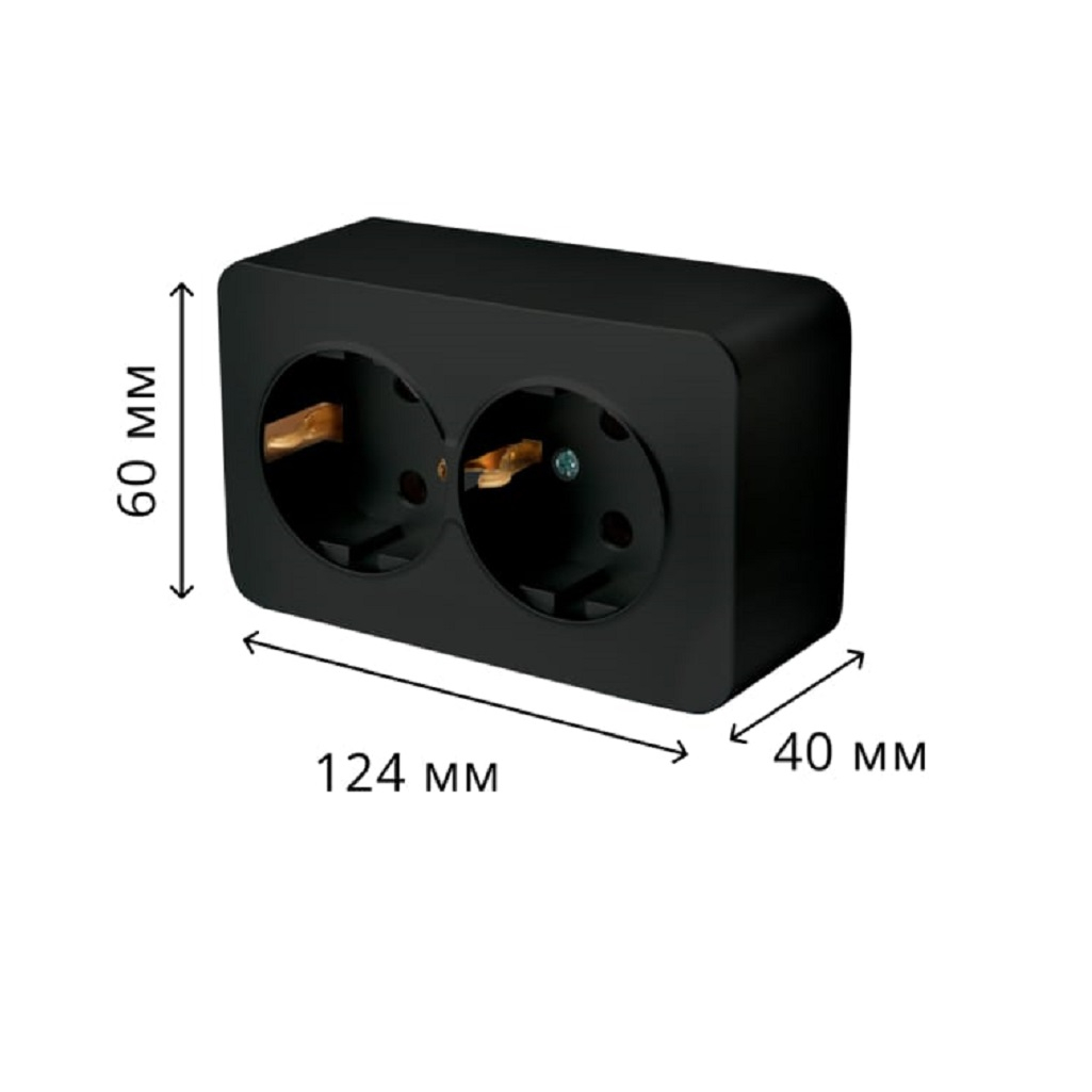 Розетка 2-местная Stekker MST16-12-05 София 49498 с заземлением, накладная, черный матовый
