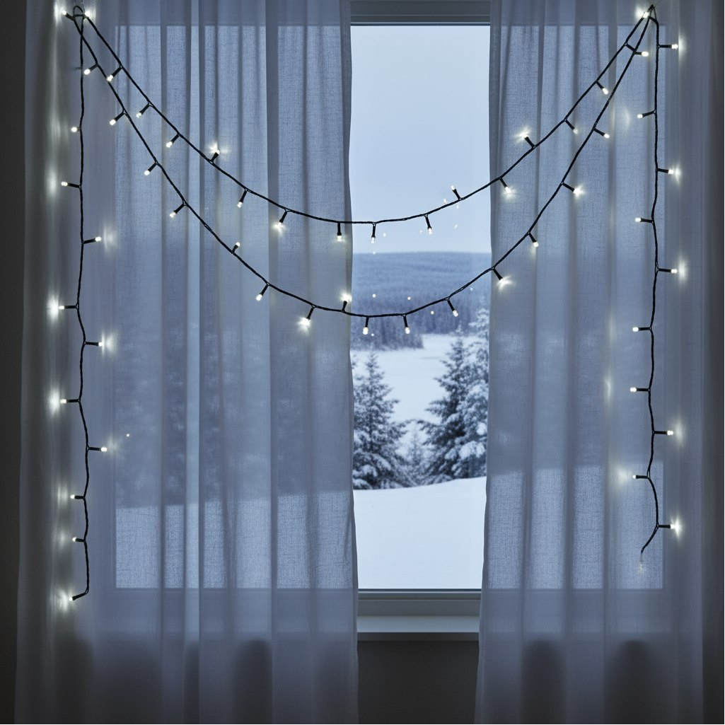 Гирлянда Uniel легко устанавливается на любых поверхностях, включая стекло, бетон, кирпич и древесину. Срок службы светодиодов составляет десятки тысяч часов, что гарантирует долговременную эксплуатацию без необходимости замены. Светлые тона зеленого провода и белых огоньков создают целостную и законченную композицию, представляющую художественный интерес. Гирлянда рименяется в дизайне городского пространства, создавая живописные образы и эстетические ощущения. Количество светодиодов обеспечивает глубокое и равномерное освещение, очерчивая контуры объектов и подчеркивая их красоту. Изделие украсит фасады зданий, набережные, парки и торговые центры, придавая им неповторимый шарм.