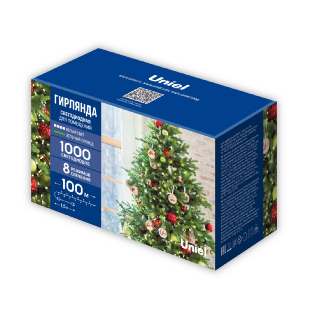 - Гирлянда UNEL ULD-S10000-1000/DGA WHITE IP20 100м. Белый свет.Провод зеленый.