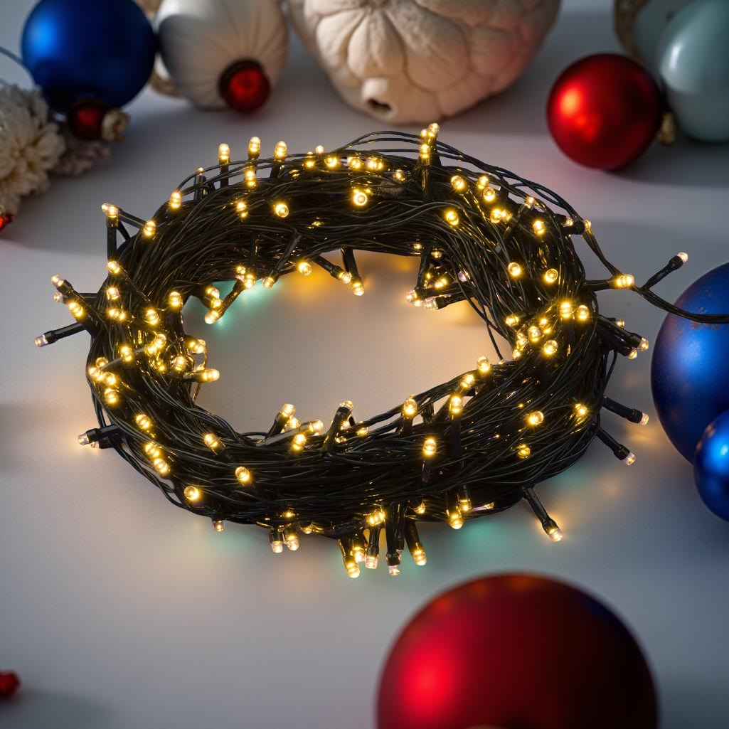 - Гирлянда UNEL ULD-S3000-300/DGA WARM WHITE IP20 30м.Теплый белый свет. Провод зеленый.