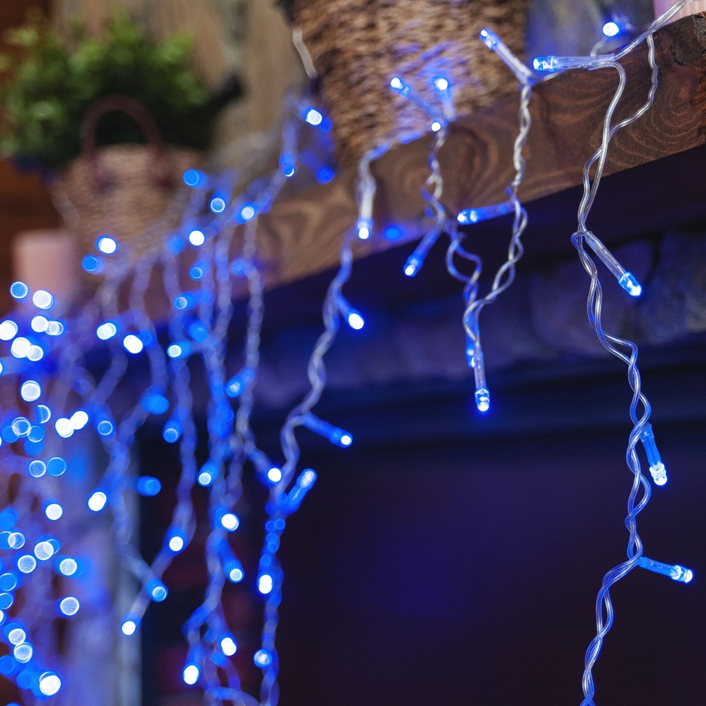 Гирлянда светодиодная Uniel ULD-B3010-200-DTA BLUE 07950, IP20, бахрома, Синий свет 07950, 3 м предназначена для декорирования интерьера в помещении. Гирлянда выполнена в виде горизонтального провода, с которого свисают короткие нити с лампочками. Гирлянда имеет 32 подвеса, расположенных на расстоянии 9 см между каждым. Длина подвесов 40 и 70 см. Всего 200 светодиодов. Изделие можно разместить над дверным или оконным проемом, растянуть на стене или под потолком, можно украсить предметы интерьера. 8 режимов свечения сменяют друг друга поочередно: волнообразный, последовательный, перетекающий, бегущая вспышка, затухающий, мерцающий, постоянный и комбинированный. Степень защиты IP20 указывает на необходимость использования данной гирлянды только внутри помещений, без воздействия влаги. Срок службы предполагает 50000 часов. Изделие упаковано в картонную коробку.