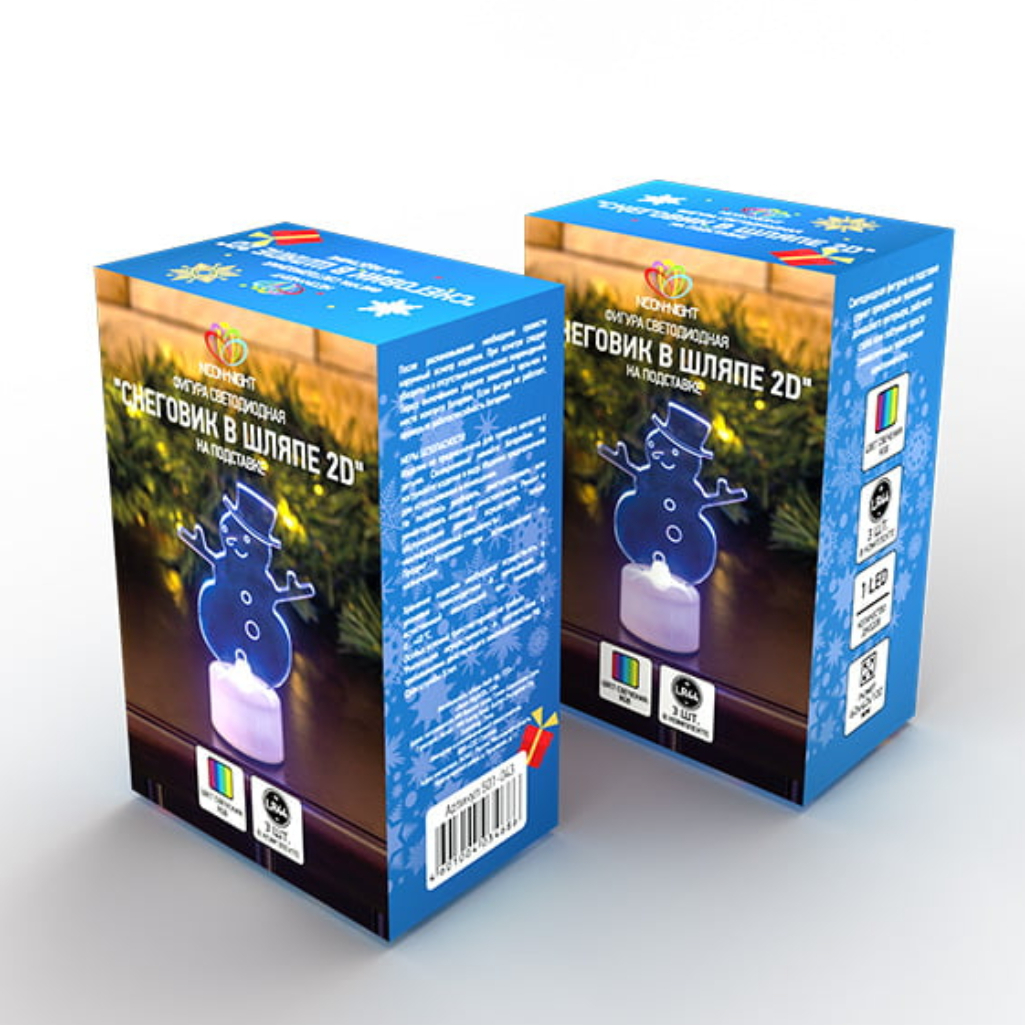 Технические характеристики фигуры NEON-NIGHT Снеговик в шляпе, 2D 501-043 RGB, на подставке, высота 10 см