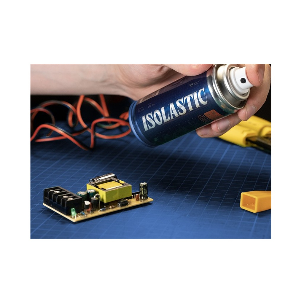 Изолента жидкая Isolastic для ремонта электроники, спрей, прозрачный, 210 мл - это жидкая изолента, образующая эластичную, прозрачную обволакивающую оболочку на обрабатываемой поверхности. Она обеспечивает надежную защиту от воды, химических растворов, механического воздействия и короткого замыкания. Isolastic идеально подходит для защиты электрических контактов, клемм, пластиковых элементов салона авто, электронных компонентов и плат, деталей сложной формы, спаек проводов, контактных групп и многого другого. С помощью Isolastic вы можете защитить практически любую поверхность от агрессивных сред, обеспечивая долговечность и надежность оборудования. Устойчиво к воздействию неорганических растворителей и растворов.