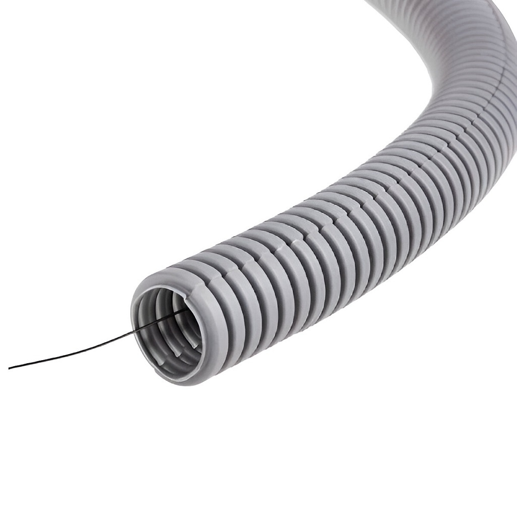Труба гофрированная ПВХ Ruvinil 12001 с зондом, диаметр 20 мм, серая, легкая