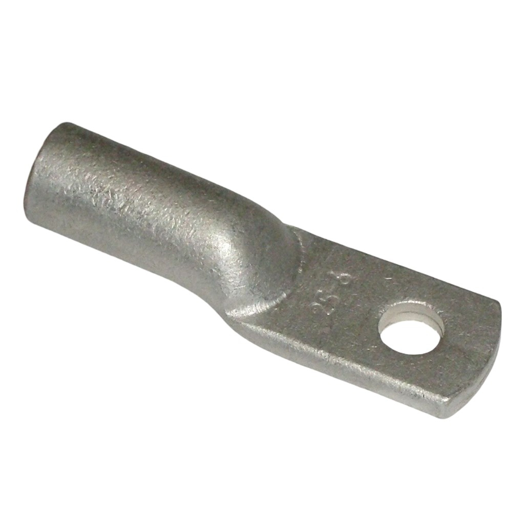 Наконечник кольцевой КЗОЦМ 25-10 мм, М10, луженая медь, 23298 — обжимной кольцевой наконечник для оконцевания медных проводников сечением 25 мм². Имеет кольцевую форму с отверстием под метрическую резьбу М10 (болт 10 мм). Изготовлен из луженой меди для защиты от коррозии. Закрепляется методом опрессовки.