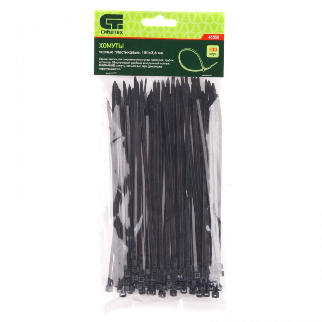 Стяжка кабельная Сибртех 45550 пластик 3.6х180 мм, упаковка 100 шт, черный
