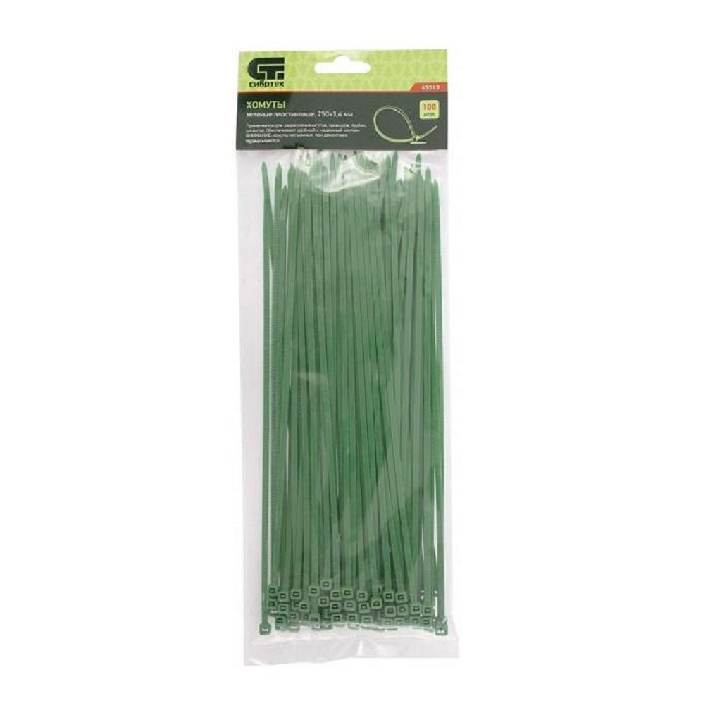 - Хомуты СИБРТЕХ пластиковые зелёные 3,6*250мм 100шт/уп
