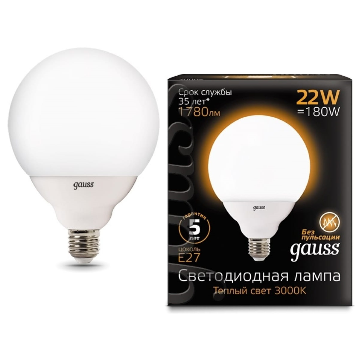 Описание лампы Gauss LED 22Вт 3000K G125 E27