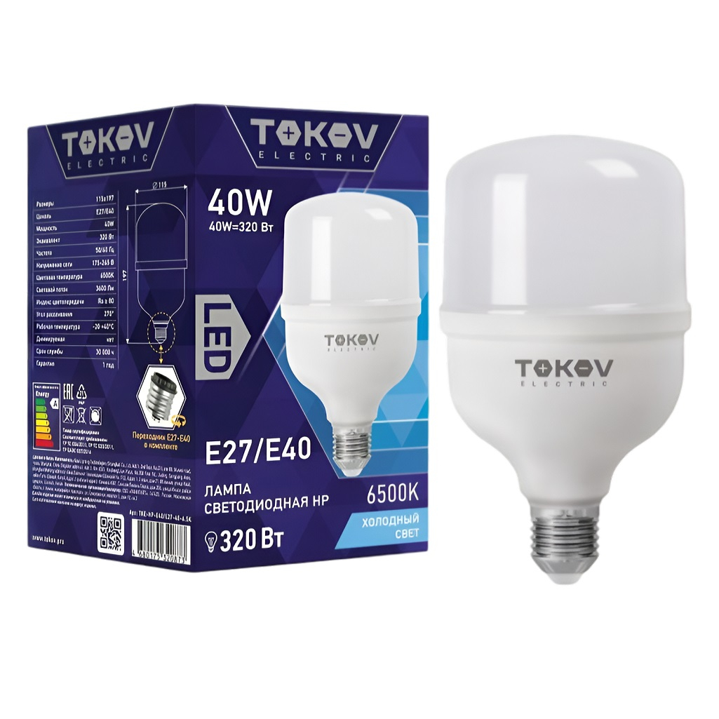 - Лампа светодиодная TOKOV ELECTRIC TKE-HP-E40/E27-40-6.5K 40Вт HP 6500К Е40/Е27