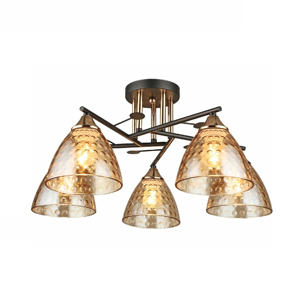 Описание люстры Reluce 03674-0.3-05 BK+FG, 5 ламп, Е27, 300 Вт, стекло, до 30 кв.м