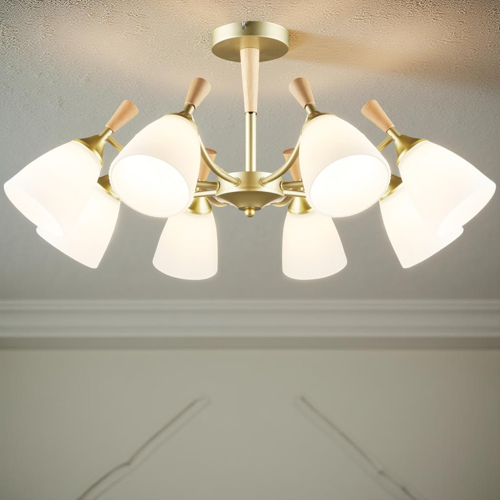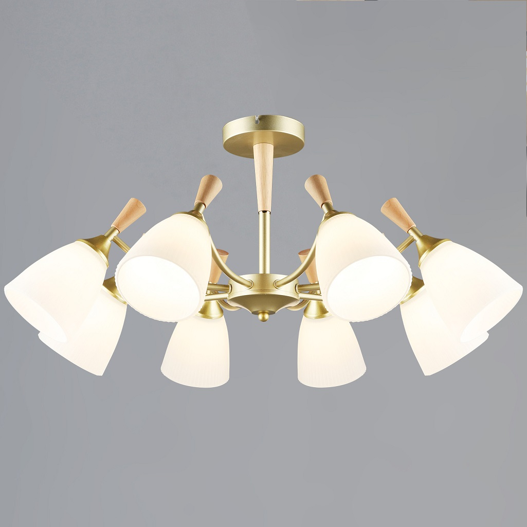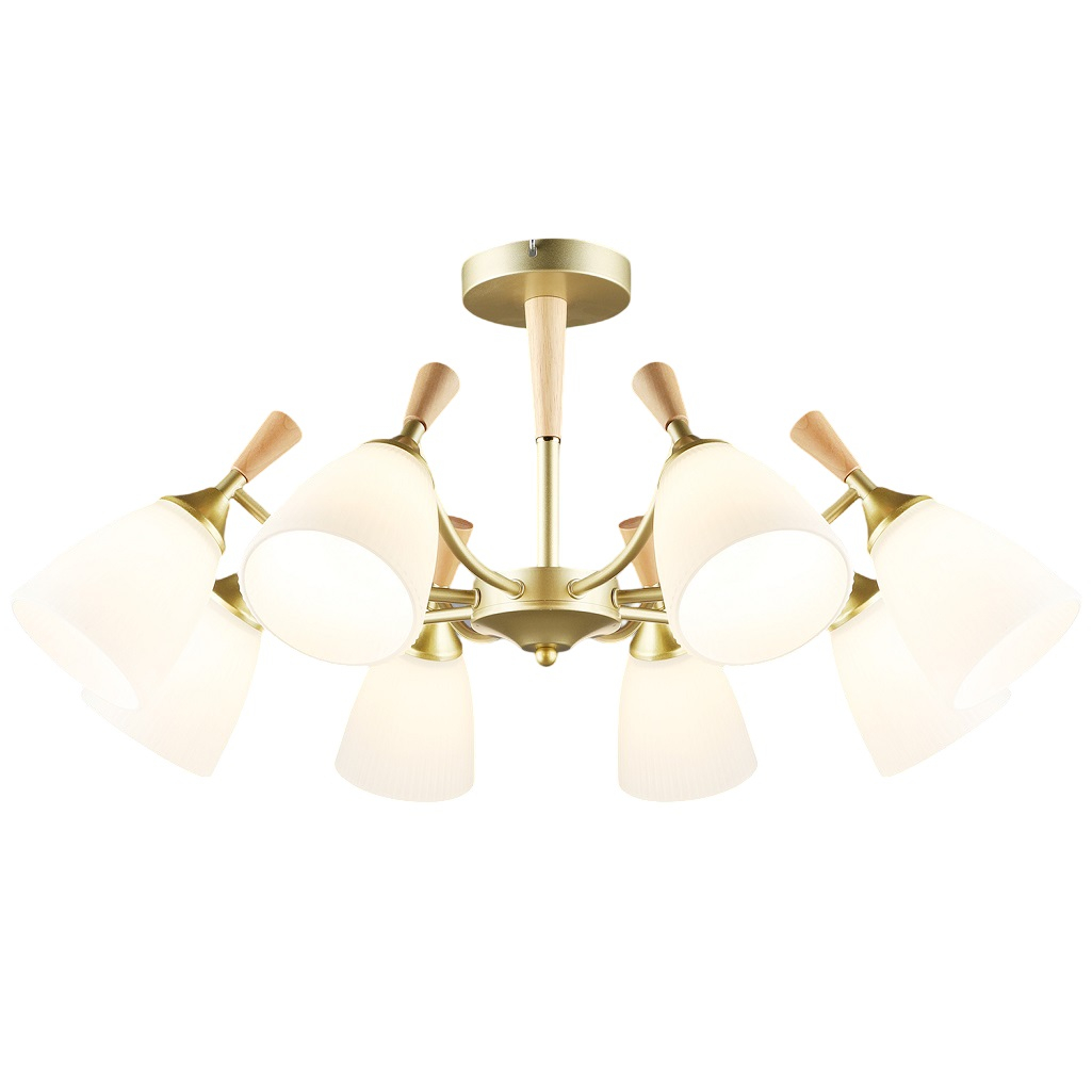 Люстра Reluce 38960-0.3-08 GD+WOOD, 8 ламп, 480 Вт, Е27, металл, до 48 кв.м