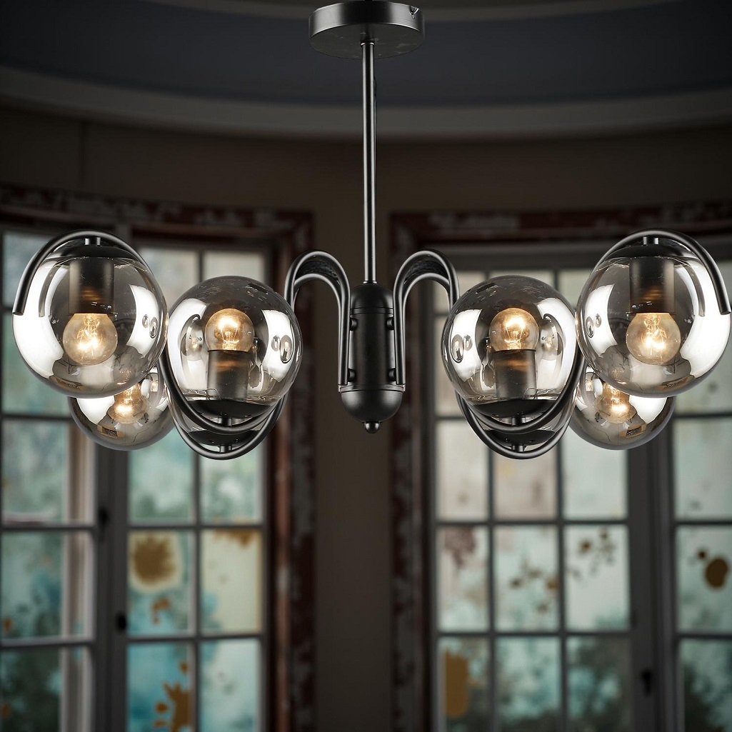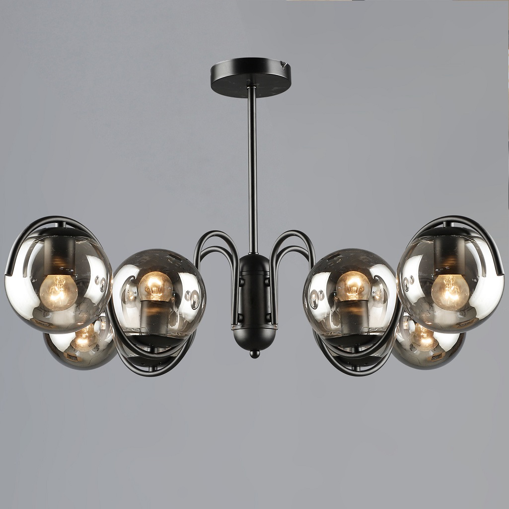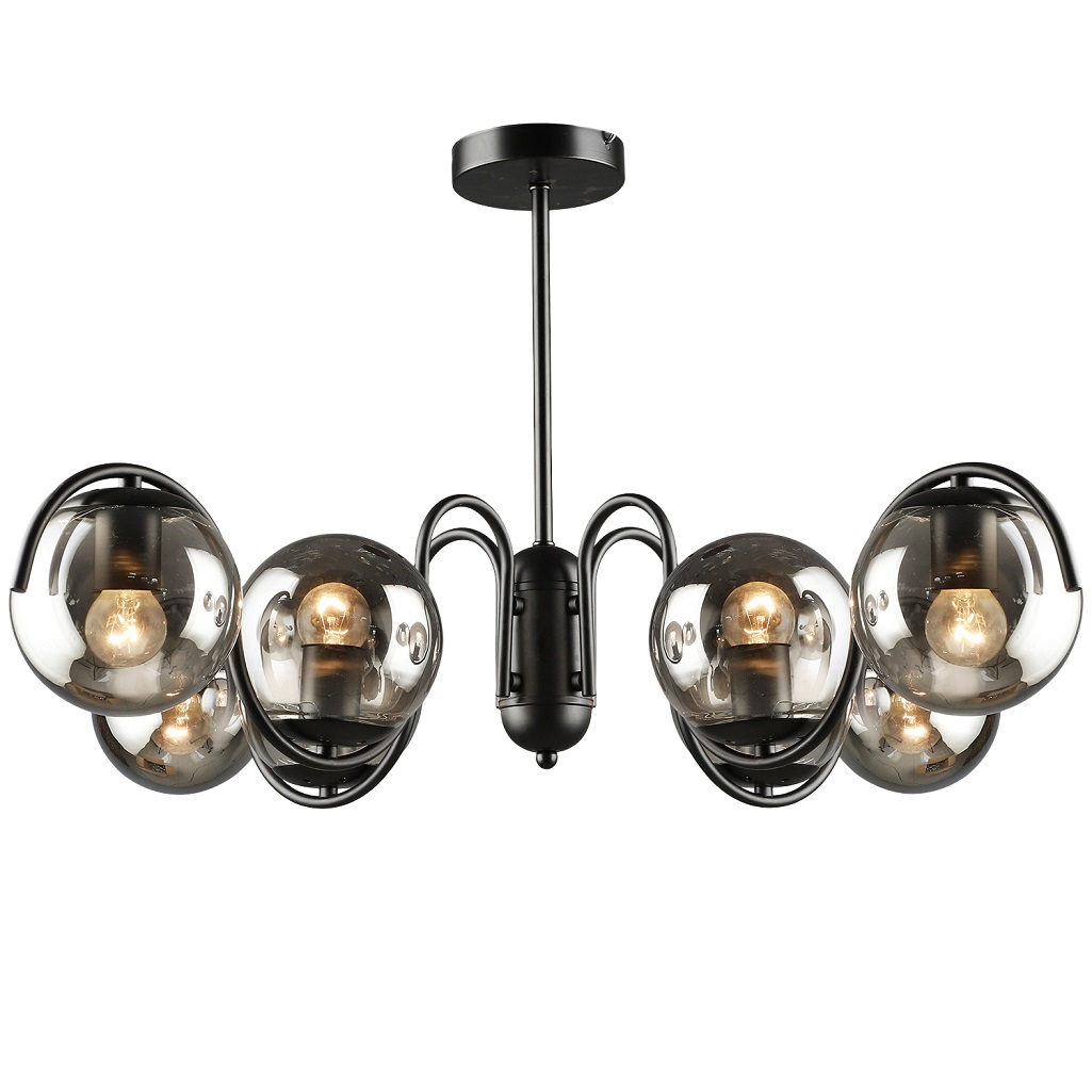 Люстра Reluce 64070-0.3-08 BK+WOOD, 8 ламп, 480 Вт, Е27, металл, до 48 кв.м