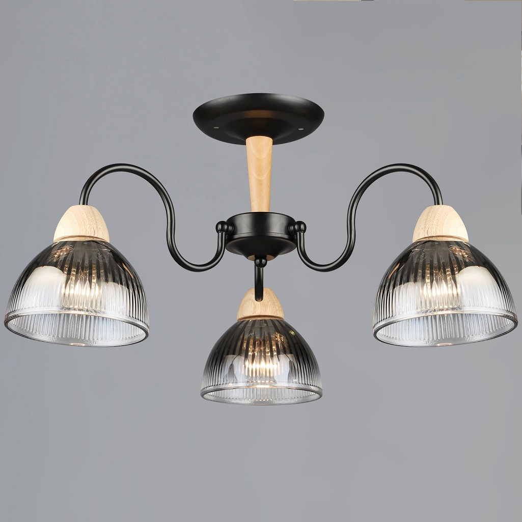 Описание люстры Reluce 69660-0.3-03 BK+WOOD, 3 лампы, 180 Вт, Е27