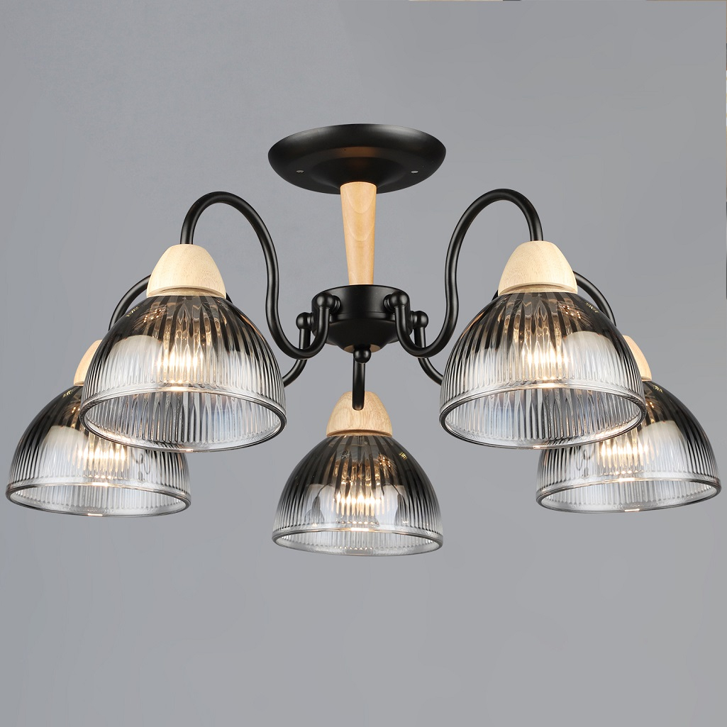 Люстра Reluce 69660-0.3-05 BK+WOOD, 5 ламп, 300 Вт, Е27, металл, дерево, до 30 кв.м