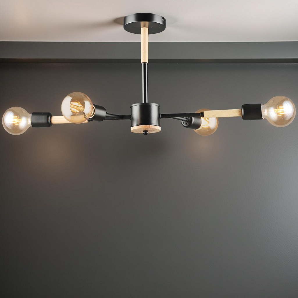 Светильник потолочный Reluce 99960-0.3-04 BK+WOOD, 4 лампы, 240 Вт, Е27, металл, дерево, до 24 кв.м