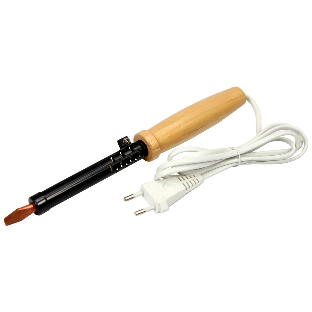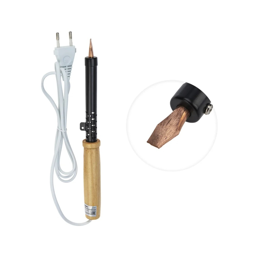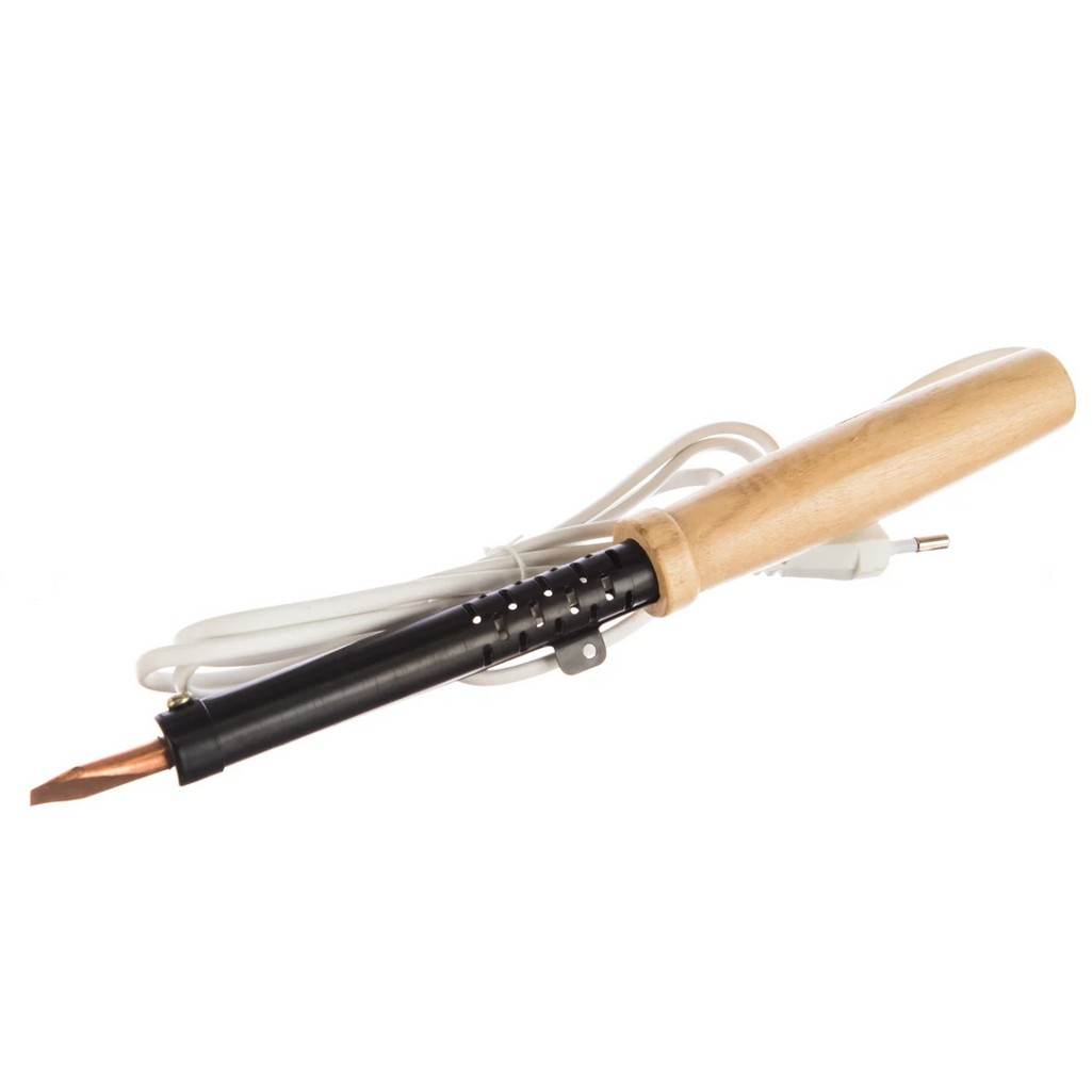 Служит для пайки и лужения деталей и заготовок из стали и меди. Подходит для работы с оловянно-свинцовыми припоями. Нагревательный элемент представляет собой нихромовую спираль. Рабочая часть устройства выполнена из меди высокого качества. Рукоятка изготовлена из древесины, имеет удобную форму. Сетевой шнур имеет надежную двойную ПВХ изоляцию. Провод армирован прочной вилкой, которая совместима с отечественными розетками. Паяльник соответствует II классу электрозащиты, может использоваться как в домашних условиях, так и на производственных участках.