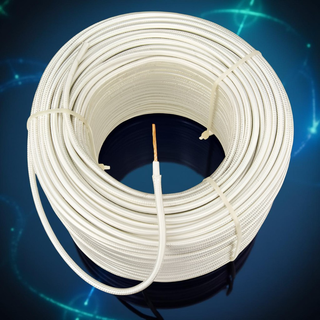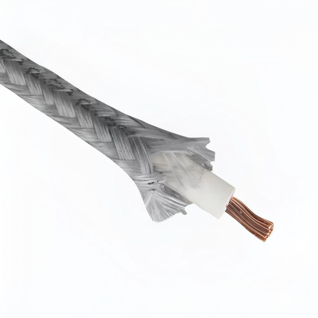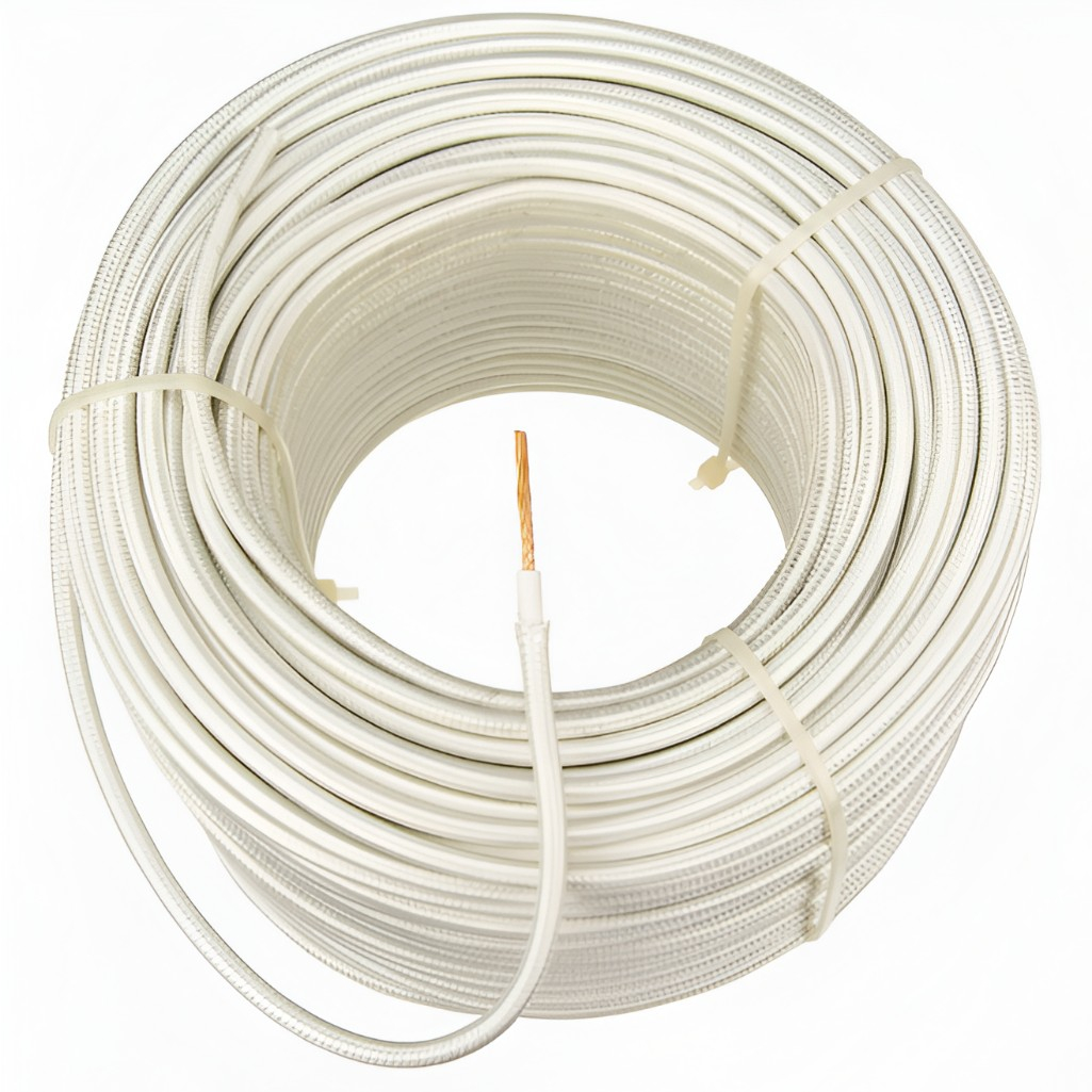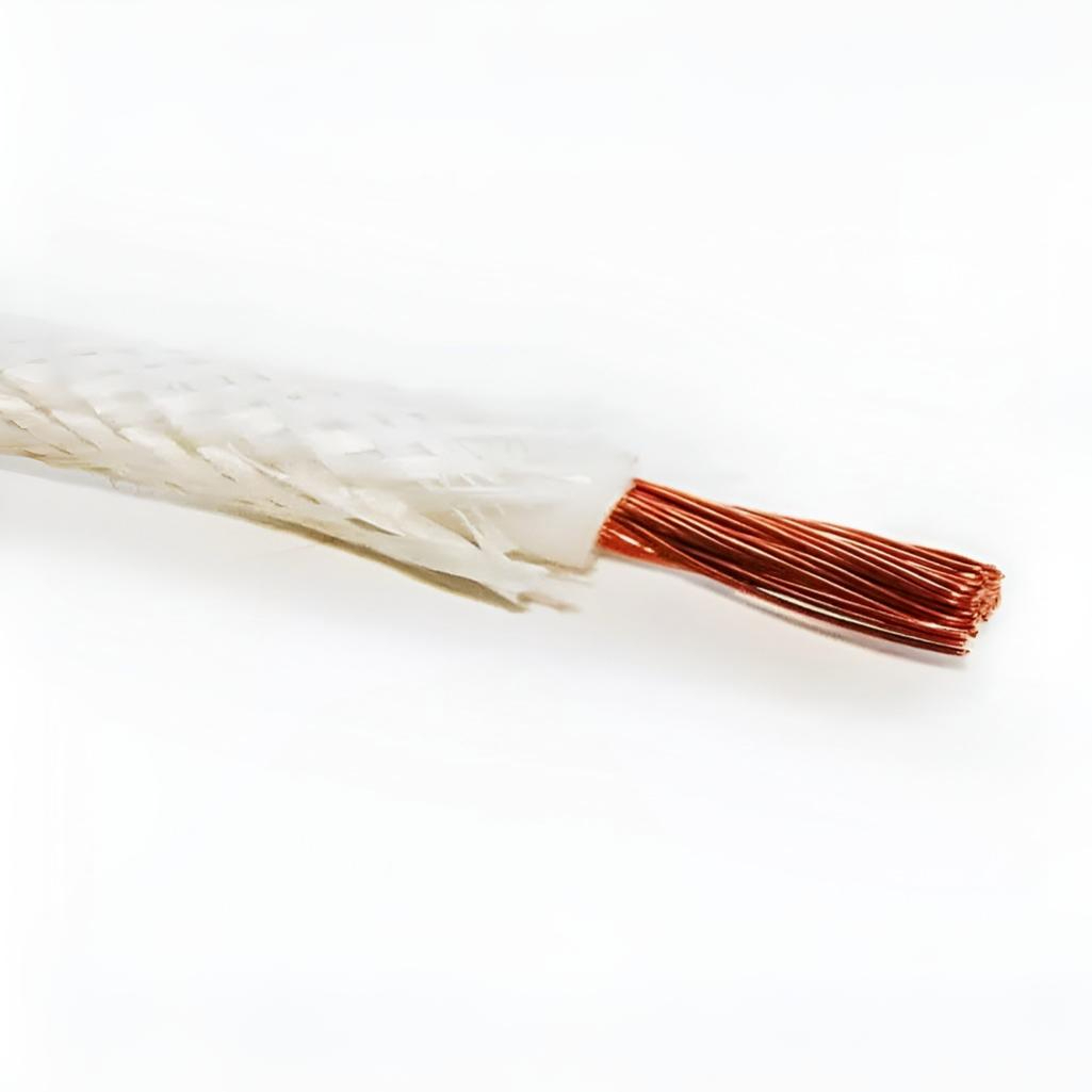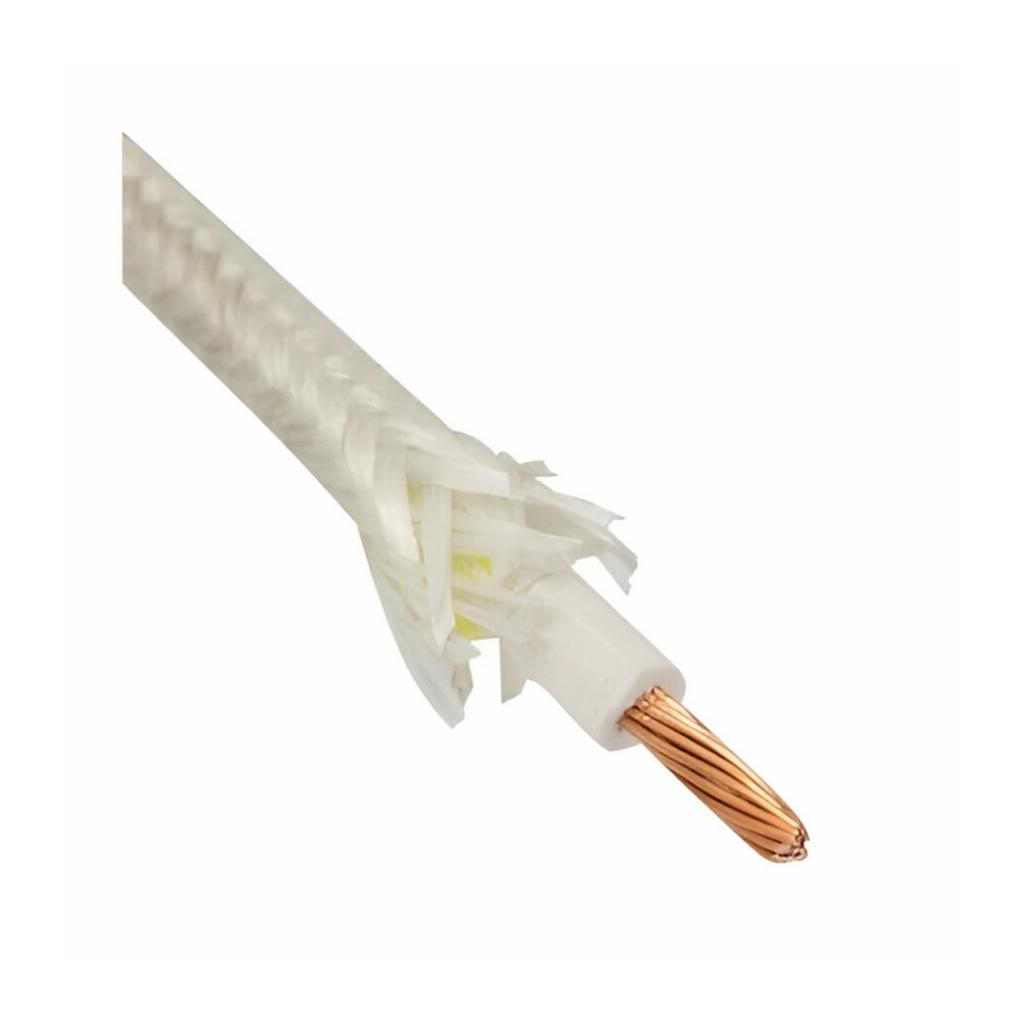 Провод силовой РКГМ Москабель термостойкий 1х1.5 кв.мм, установочный, белый, длина 1 метр - провод термостойкий с одной многопроволочной медной жилой сечением 1,5 миллиметров квадратных, в изоляции из кремнийорганической резины и оплетке из стекловолокна пропитанной эмалью или теплостойким лаком.