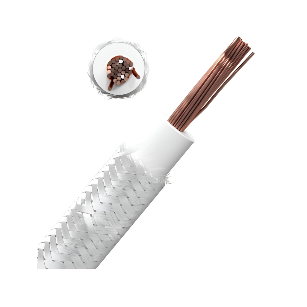 Провод силовой РКГМ Москабель термостойкий 1х2.5 кв.мм, установочный, белый, длина 1 метр - провод термостойкий с одной многопроволочной медной жилой сечением 2.5 миллиметров квадратных, в изоляции из кремнийорганической резины и оплетке из стекловолокна пропитанной эмалью или теплостойким лаком.