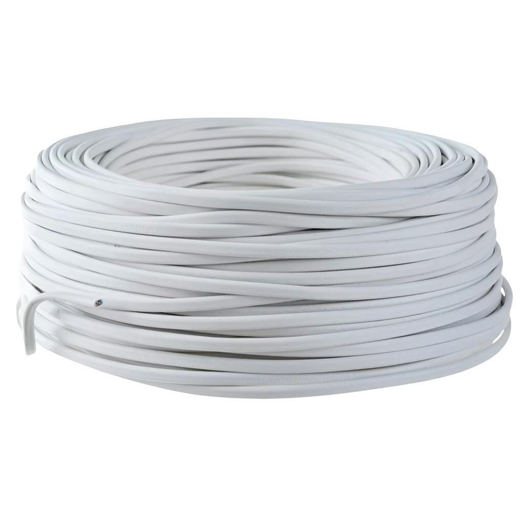 Провод силовой ПВС 2х2.5 кв.мм, установочный, белый, длина 30 метров — это гибкий кабель для присоединения к сетям электроприборов, инструмента, машин и удлинителей. Он рассчитан на номинальное напряжение до 380 В и подходит для стационарного и подвижного использования.
