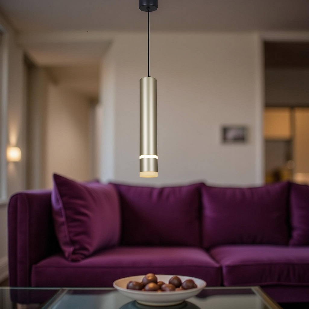 Светильник точечный Reluce 16005-0.9-001LD GU10 GD подвесной, 12 Вт, металл, акрил, золотой предназначен для освещения локальной зоны площадью до 2 кв. м. При изготовлении каркаса и плафона использованы металл и акрил. Дымчатый оттенок плафона добавляет шика к роскошному основанию золотого цвета. Длина плафона - 300 мм, а длина всего светильника с подвесом составляет 1300 мм. Диаметр основания - 60 мм, диаметр самого плафона, выполненного в форме цилиндра, составляет 53 мм. Мощность светильника 12 Вт и такая модель будет прекрасно смотреться группой светильников. Но и одиночный экземпляр, без сомнения, украсит практически любой интерьер, где требуется оригинальный акцент. Монтаж изделия производится на потолк, накладным способом. Качественные материалы и уникальный дизайн являются отличительными признаками знаменитой марки Reluce и способны достойно дополнить и украсить любую обстановку.