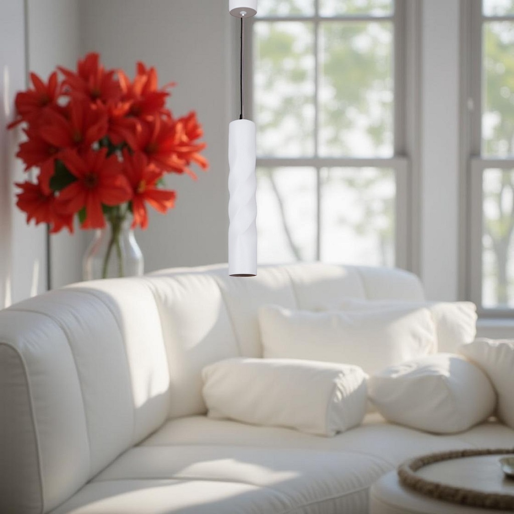 Светильник точечный Reluce 16006-0.9-001LD GU10 WT подвесной, 12 Вт, металл, белый предназначен для освещения локальной зоны площадью до 2 кв. м. Плафон выполнен из белоснежного металла. Необычная форма плафона создает впечатление бесконечного вращения, воплощенного в металле. Длина плафона - 300 мм, а длина всего светильника с подвесом составляет 1300 мм. Диаметр основания - 60 мм, диаметр самого плафона, выполненного в форме цилиндра, составляет 53 мм. Мощность светильника 12 Вт и такая модель будет прекрасно смотреться группой светильников. Но и одиночный экземпляр, без сомнения, украсит практически любой интерьер, где требуется оригинальный акцент. Монтаж изделия производится на потолк, накладным способом. Качественные материалы и уникальный дизайн являются отличительными признаками знаменитой марки Reluce и способны достойно дополнить и украсить любую обстановку.
