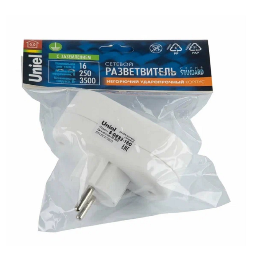 Описание разветвителя сетевого Uniel S-GES2-16O 6703, защитные шторки, с заземлением
