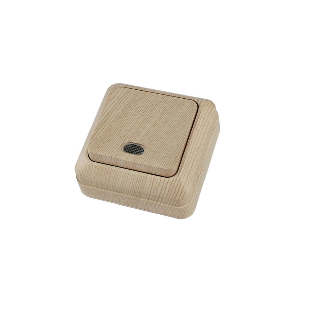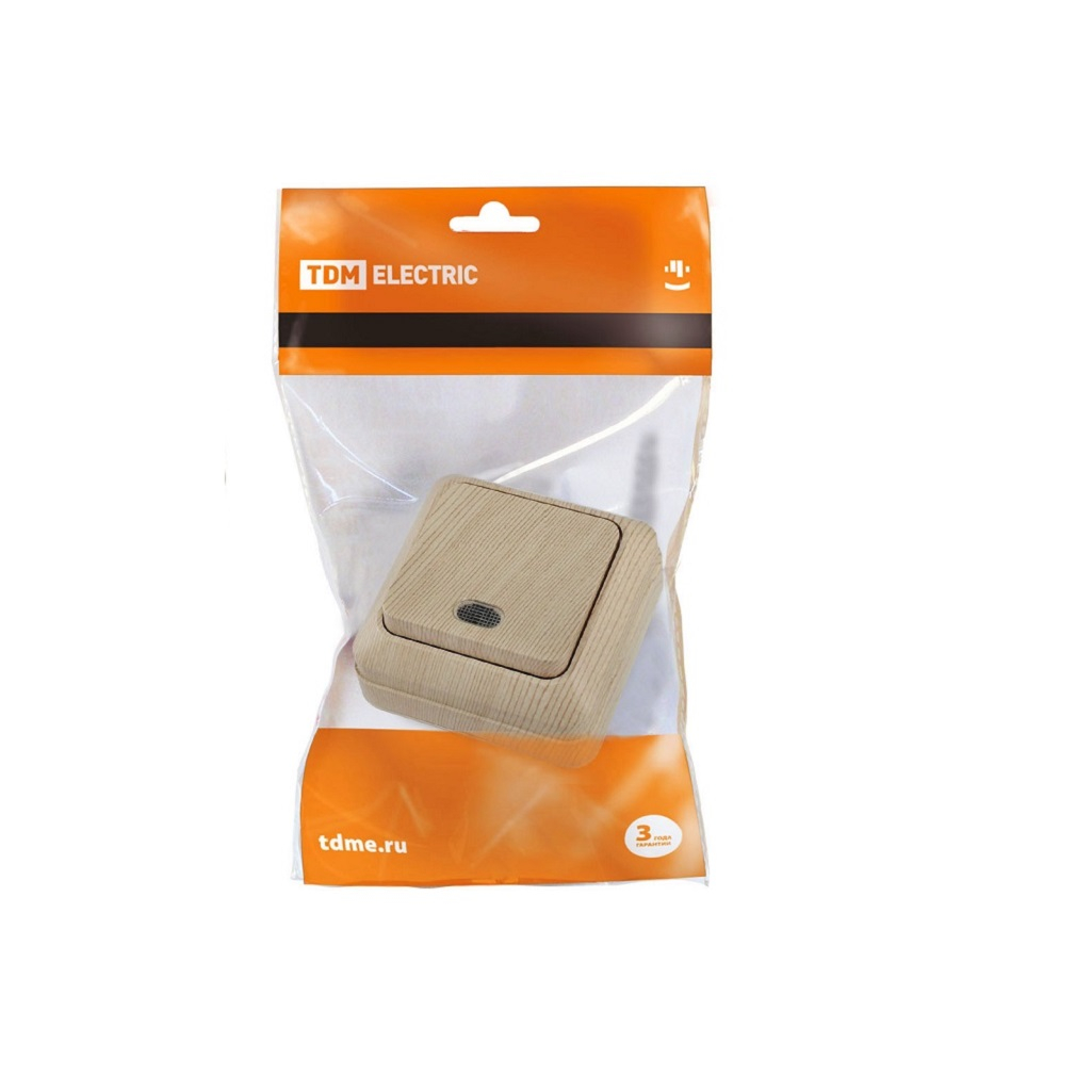- Выключатель "Ладога" TDM 1-кл. открытой установки с подсветкой IP20 10А, сосна
