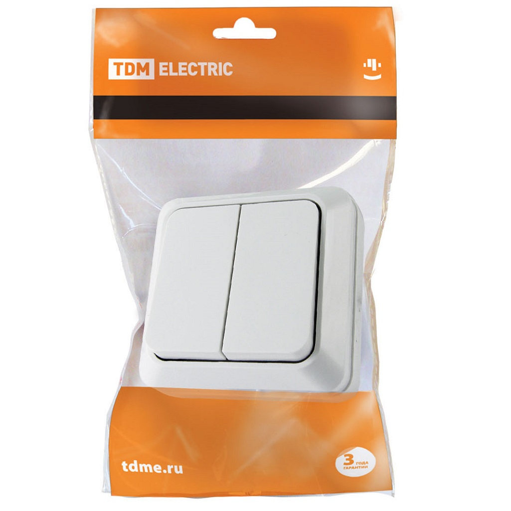 - Выключатель "Ладога" TDM 2-кл. открытой установки IP20 10А, белый