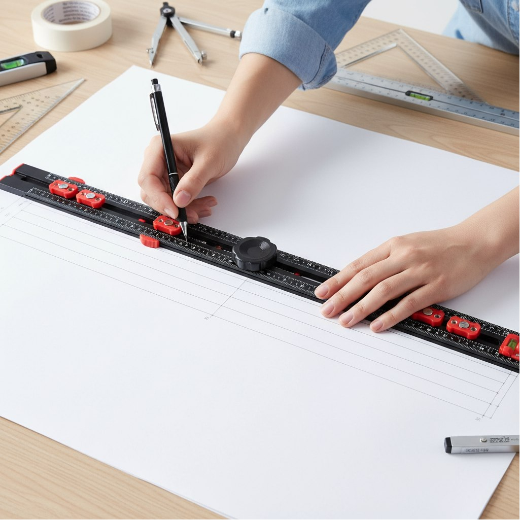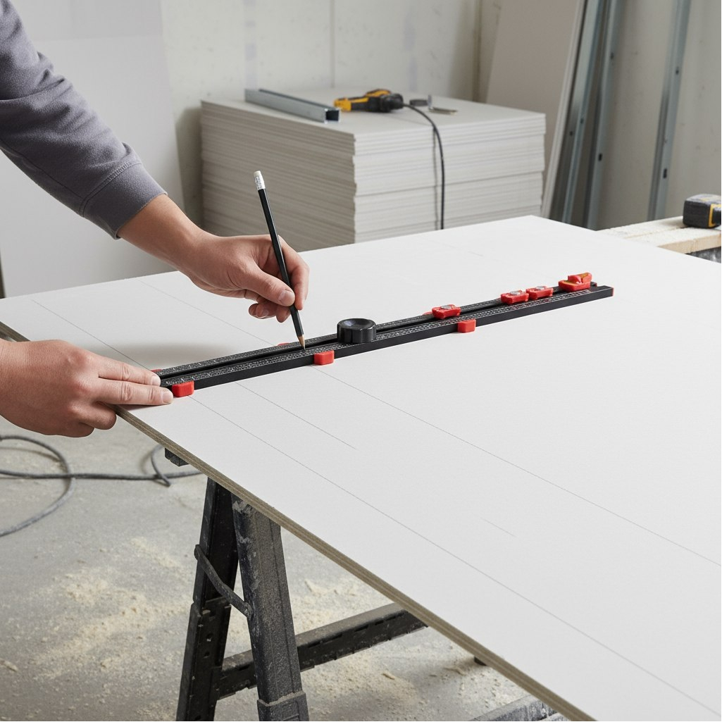 Прочный алюминиевый профиль препятствует изгибанию и деформации линейки, гарантируя постоянную точность измерений. Материалы, используемые в производстве линейки, легко моются и очищаются от загрязнений. Оптимальная длина линейки Belmash подходит для большинства повседневных задач.