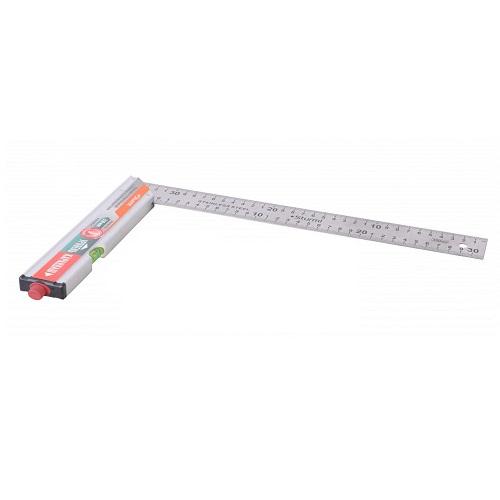 Угольник с контрастной шкалой для легких и удобных замеров. В корпусе имеется отверстие с резиновой втулкой, куда надежно крепится карандаш, что делает работу с инструментом более функциональной и комфортной. Кроме того, в рукоятку встроена колба пузырькового уровня из ударопрочного плексигласа. Двусторонняя разметка помогает проверять прямые и 45-градусные углы при ремонтных, строительных, сборочных и пр. работах.