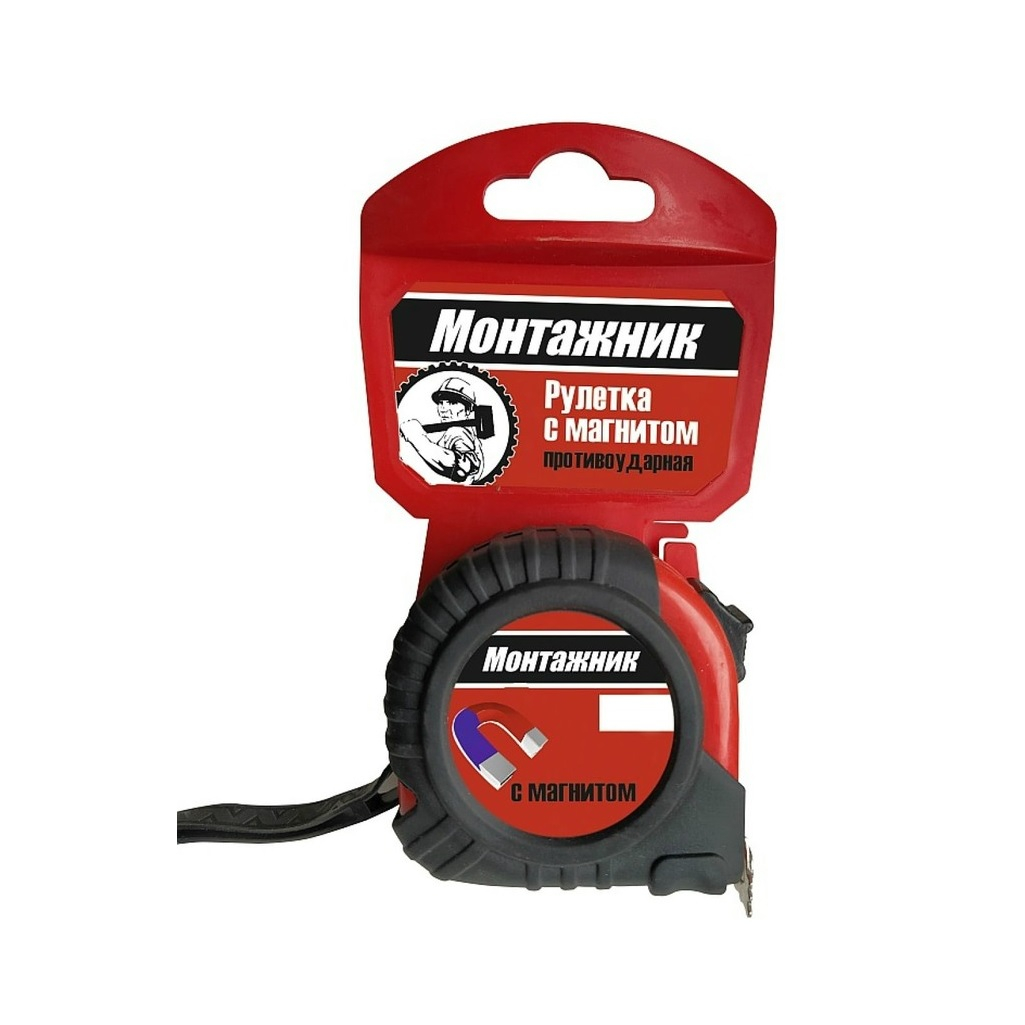 Рулетка Монтажник 601519, с магнитом, противоударная, 5 м х 19 мм, двухкомпонентный корпус - это рулетка, которая изготовлена в цельном кожухе из эко-резины без неприятного запаха. Имеет большие сильные магниты. Широкое полотно позволяет вытягивать рулетку на максимальное расстояние.