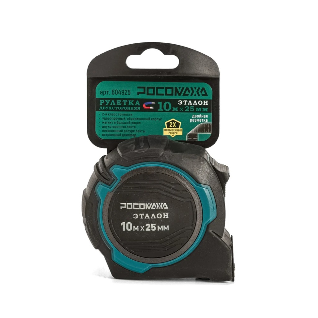 Рулетка двусторонняя Росомаха Эталон 604925, с устойчивой лентой и магнитом, 10 м х 25 мм