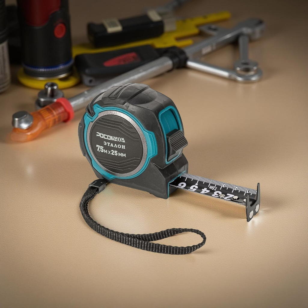 Описание рулетки Росомаха Эталон 607925, с устойчивой лентой и магнитом, 7.5 м х 25 мм