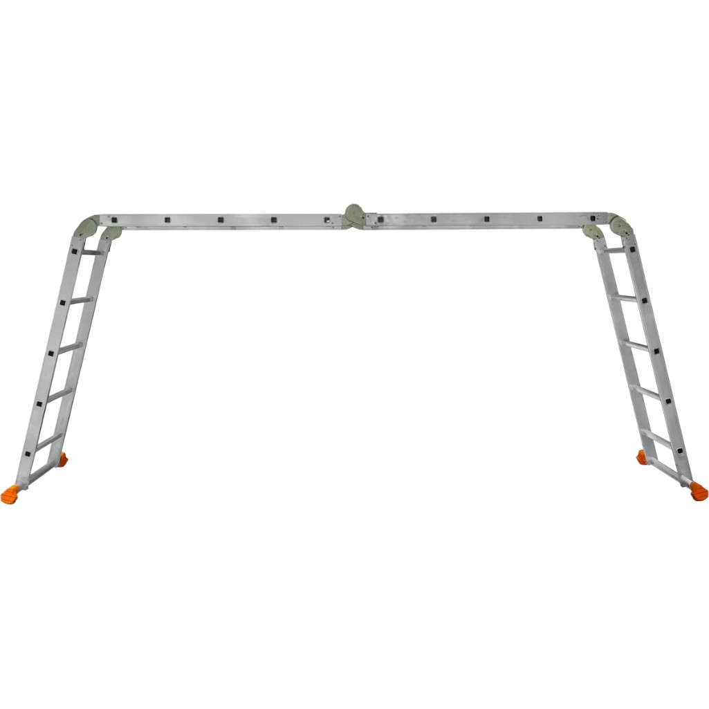 Лестница трансформер Эйфель Классик, алюминиевая, 4х5 ступеней, 4 секции, нагрузка до 150 кг - это универсальное решение для дома и профессиональных нужд. Изготовленная из прочного алюминия, она обеспечивает надежность и долговечность. Благодаря возможности трансформации, эта лестница легко адаптируется под различные задачи: используйте её как приставную лестницу, стремянку, платформу или лестницу с выносом.
