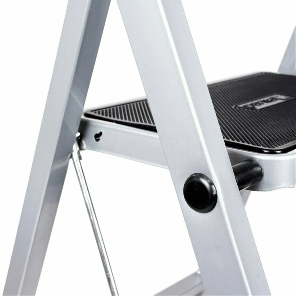Благодаря широким ступеням с пластиковыми накладками, ваша нога будет комфортно и безопасно размещена при подъеме. Стремянка выдерживает максимальную нагрузку до 120 кг, что делает её подходящей для большинства пользователей.