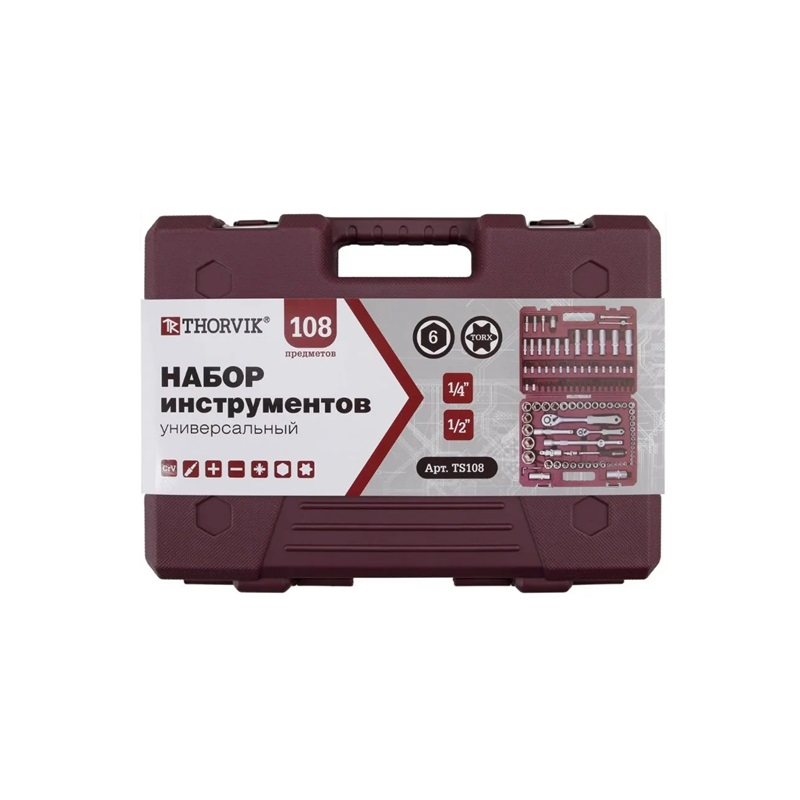 Описание набора инструментов Thorvik TS108 универсальный, 108 предметов, кейс