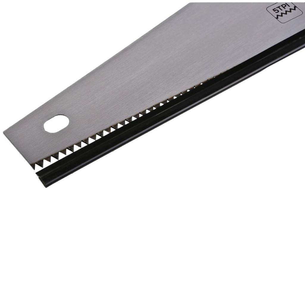 Ножовка по дереву и пластику Sturm 1060-14-450SP, длина 450 мм, 5TPI предназначена для работы с деталями из дерева, фанеры и пластика. Инструмент с крупным зубом позволяет делать рез на 20% быстрее по сравнению с обычными моделями. Двухгранная заточка с использованием алмаза уменьшает трение и повышает скорость распила. Благодаря закалке до 60HRC, зуб долго сохраняет остроту. Антикоррозийное покрытие из полимера защищает полотно от влаги. Удобная рукоятка обеспечивает надёжный хват и улучшает управление инструментом. Пластиковый защитный кожух предотвращает случайные порезы.