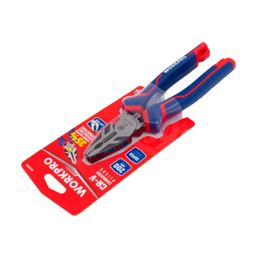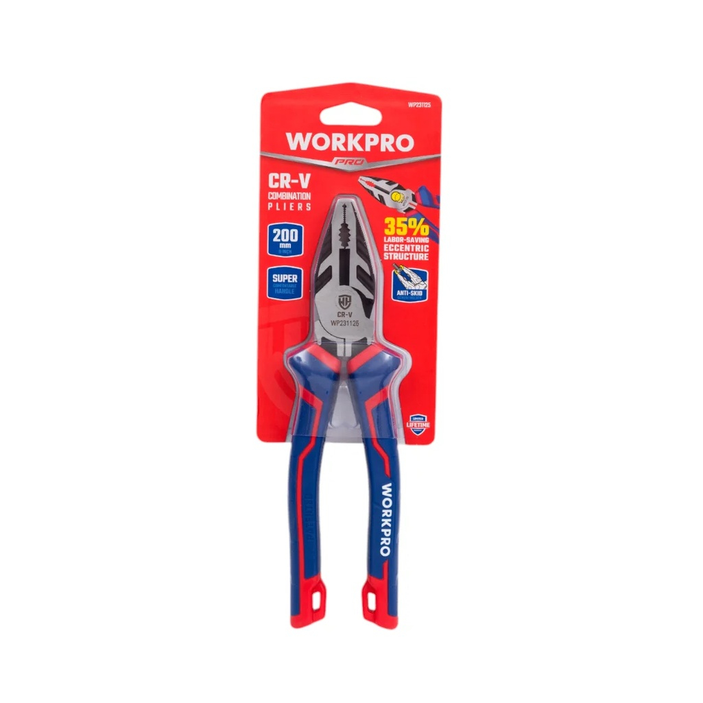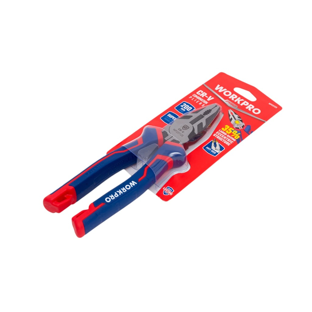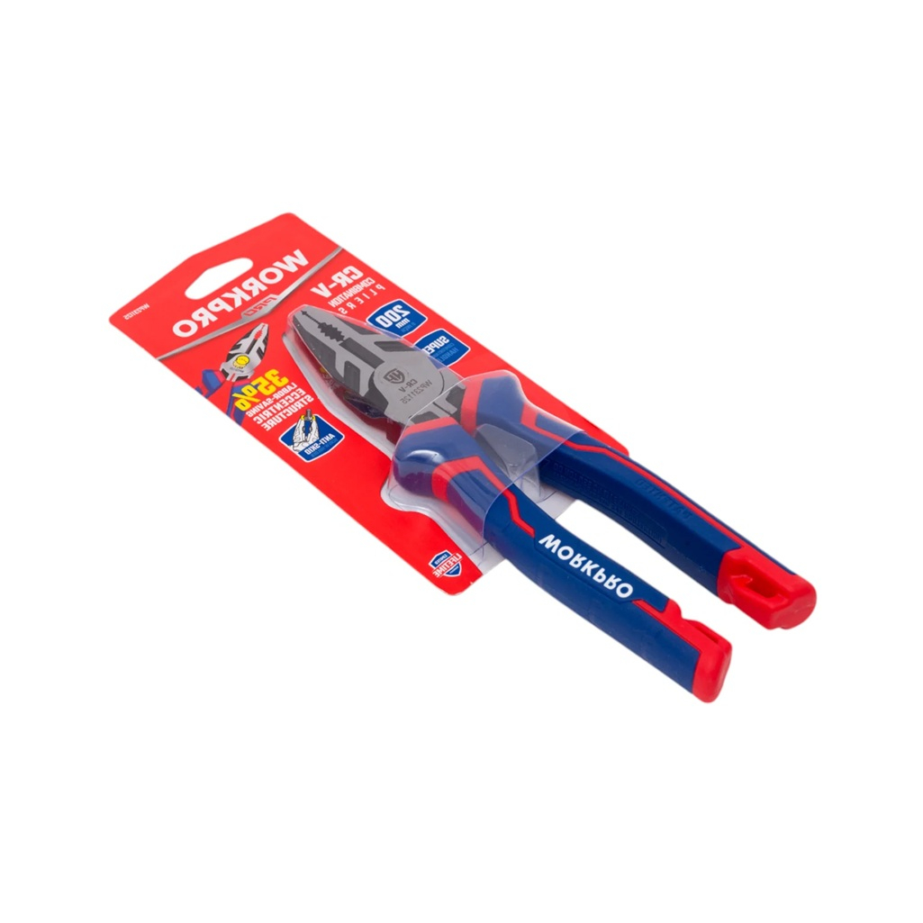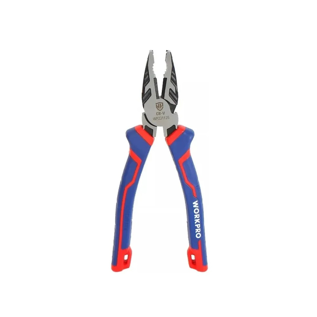 Пассатижи комбинированные Workpro WP231125, двухкомпонентные рукоятки, сталь, 200 мм