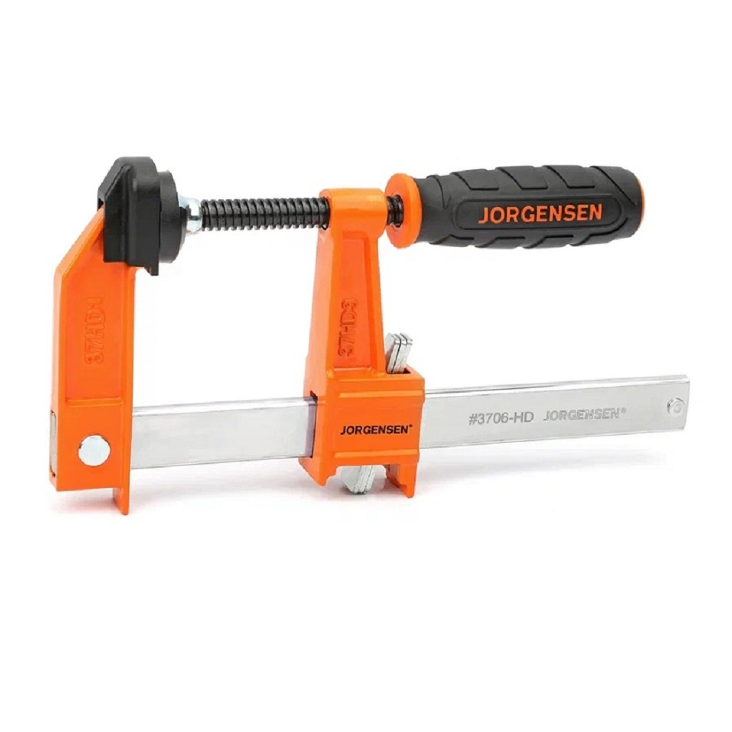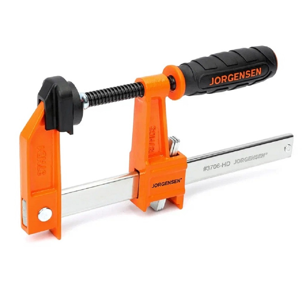 Струбцина F-образная Pony Jorgensen Medium-duty PJ3706, длина 152 мм предназначена для средних условий эксплуатации. Используется для плотного зажима деталей при склеивании или для фиксации их в процессе выполнения столярных, слесарных и прочих работ. Струбцина очень прочная. Чугунные стационарные и раздвижные головки с покрытием из оранжевого порошка соединены с высокоуглеродистой стальной направляющей, устойчивой к ржавчине. Направляющая обладает выдающейся прочностью на растяжение - 6000 килограмм на квадратный сантиметр. Быстродействующая скользящая головка оснащена крестообразной резьбой для крепления винта из холоднотянутой стали. Рукоятка и поворотная опора обеспечивают удобство использования. Оригинальная многотарельчатая муфта надёжно фиксирует головку на любом участке направляющей.