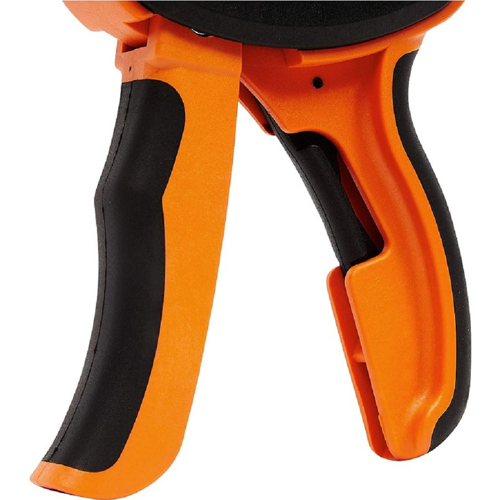 Его также можно преобразовать в продольный зажим. Особенности струбцины Pony Jorgensen Light Duty E-Z HOLD PJ33606 включают простой и удобный зажим одной рукой, раскрываемость губок с накладками до 660 мм при соединении двух струбцин, удобную контурную рукоятку и быстроразъемный рычаг.