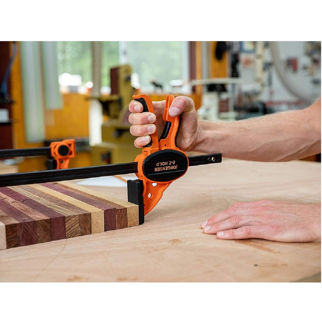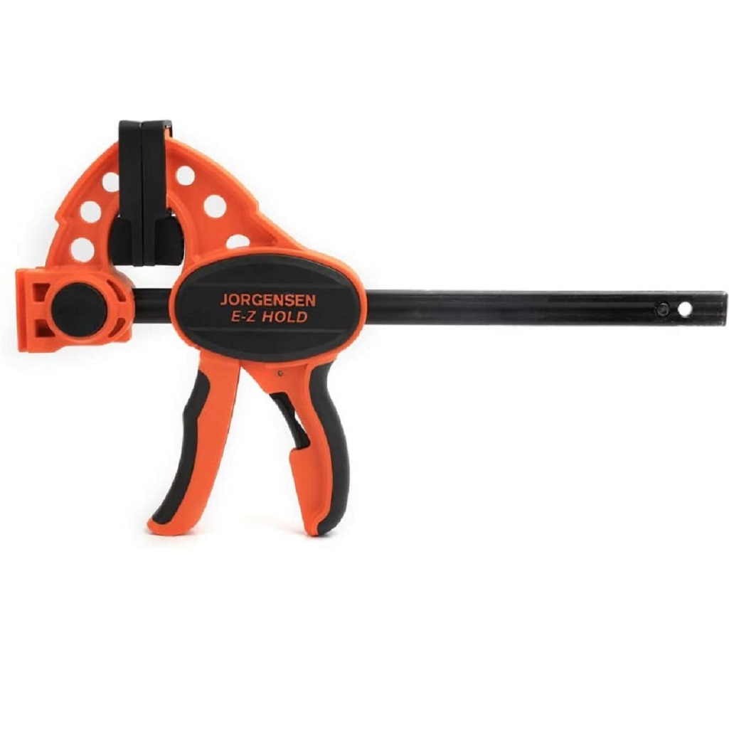 Струбцина быстрозажимная Pony Jorgensen E-Z HOLD PJ33406, длина 152 мм предназначена для фиксации деталей с последующим проведением манипуляций над ними. Струбцина отлично подходит для задач средней сложности в деревообработке, а также для хобби, ремесленных работ и моделирования. Её можно легко превратить в распорный зажим. Основные характеристики струбцины Pony Jorgensen E-Z HOLD PJ33406: простой и удобный зажим одной рукой, раскрытие губок с защитными накладками на 76 сантиметров, эргономичная контурная рукоятка и быстроразъемный рычаг.