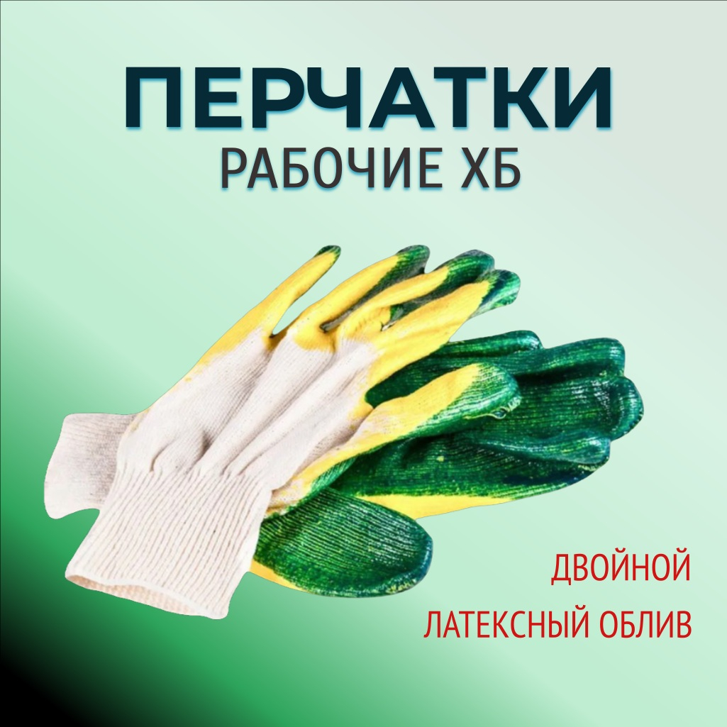 Перчатки рабочие защитные хлопчатобумажные, двойной латексный облив, универсальные