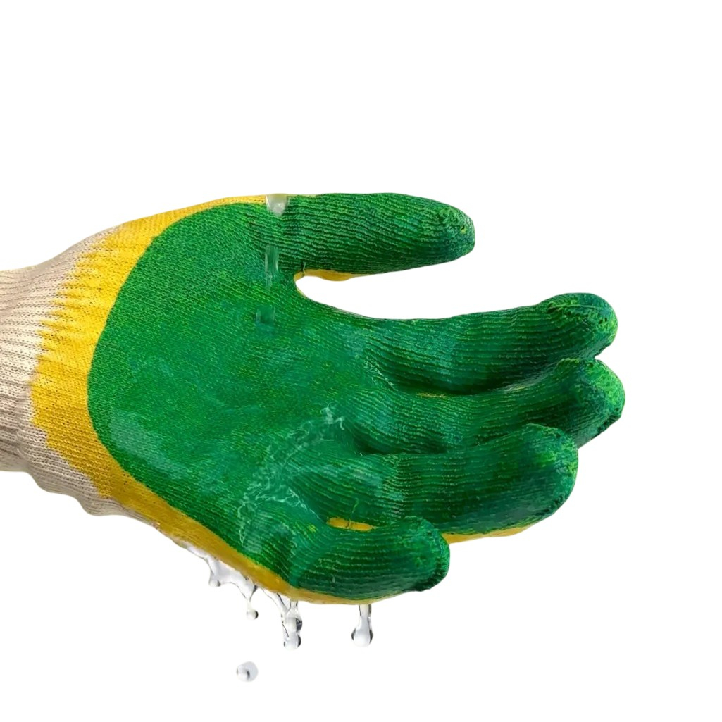 Перчатки рабочие защитные хлопчатобумажные, двойной латексный облив, универсальные предназначены для защиты рук в строительстве, промышленности и быту. Перчатки изготовлены из вспененного латекса, что обеспечивает надежную защиту от механических повреждений и влаги. Внутренний слой из хлопчатобумажной ткани гарантирует комфорт и длительный срок службы. Перчатки гипоаллергенны, что исключает возможность аллергических реакций. Универсальные по своей природе, они подходят для широкого спектра задач и защищают руки при выполнении различных видов работ. Прочные и удобные, они идеальны для использования в строительстве и ремонте, обеспечивая максимальную защиту и комфорт. Эти перчатки подходят как мужчинам, так и женщинам, гарантируя надежную защиту и удобство во время работы. Материал напыления и двойной облив предотвращают выскальзывание предметов и защищают от намокания. Выбирая хозяйственные перчатки с двойным обливным покрытием, вы получаете высокую степень защиты и комфорт при выполнении разнообразных задач. Они влагостойкие, обладают повышенной износостойкостью и максимальной степенью защиты, особенно при работе со скользкими поверхностями.