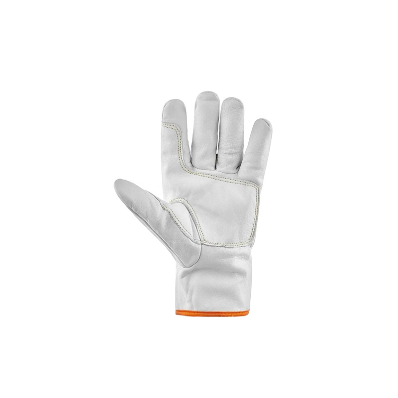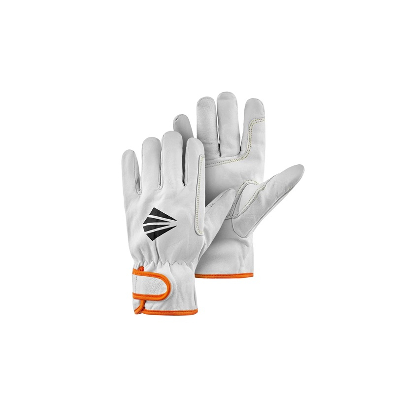 Перчатки защитные Сварог ПР-38 размер 11 из натуральной кожи имеют фиксатор на манжете, что обеспечивает лучшую посадку на руке. Ладонь дополнительно укреплена износостойкой нашивкой. Для работ, связанных с высокими истирающими, механическими нагрузками.