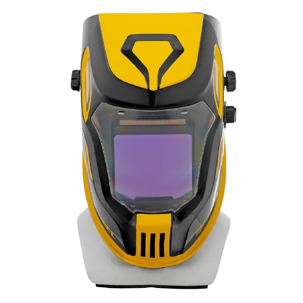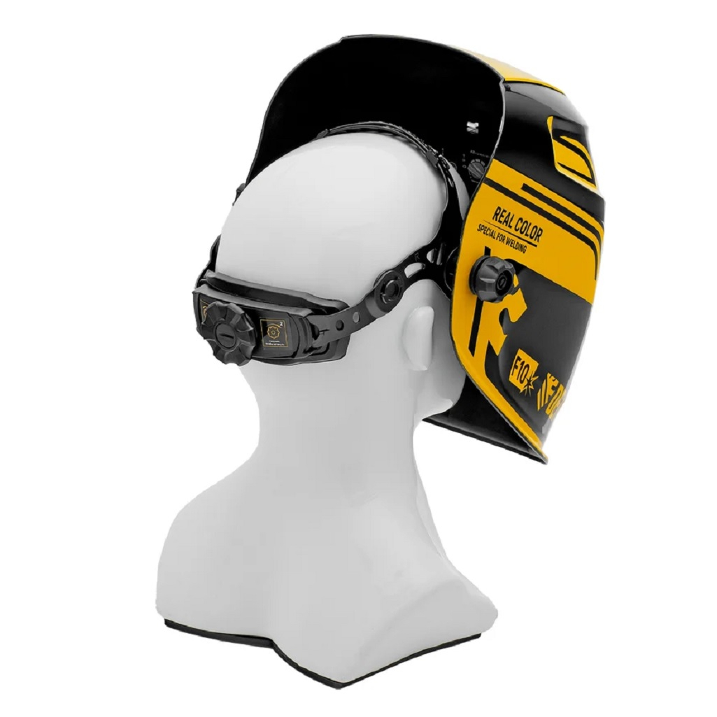 Ультралегкий корпус (480 г) из термостойкого полиамида. Анатомическая оголовная система с 5-точечной регулировкой: затылочная амортизация; угол наклона до 30°; возможность крепления на каску. Увеличенное смотровое окно (100×90 мм) – лучший обзор в классе. Двойной слой фильтрации: защита от ИК/УФ излучения (DIN 16+); поляризационный экран от бликов. Ресурс солнечных батарей + литиевый аккумулятор (30 дней без подзарядки). Автоотключение через 15 мин неиспользования. Температурный диапазон: от -5°C до 55°C. Режим "Шлифовка" (DIN 3-4) для защиты при зачистке швов. Функция задержки отключения (2-10 сек на выбор). Совместимость с очками: дополнительный отсек для диоптрий.