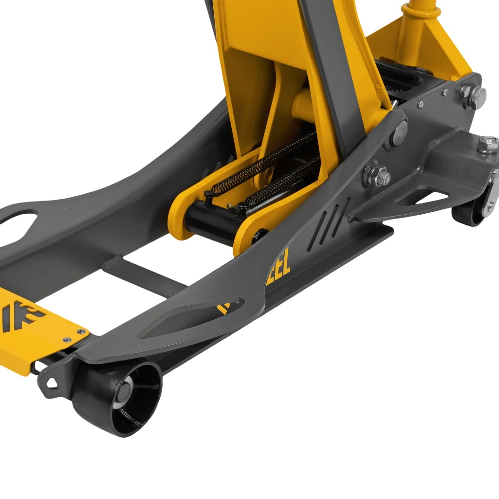 Для защиты от перегрузок предусмотрен предохранительный клапан, который не позволяет поднимать грузы массой более 3.8 тонны. Передние колеса домкрата оснащены масленками для смазки подшипников, что предотвращает заклинивание механизма при интенсивной работе. В специальный лоток для мелких деталей можно складывать болты и гайки. Резиновая опора и прорезиненная рукоятка защищают кузов и днище автомобиля от повреждений. Домкрат Denzel 51251 прошел тестирование с 25%-м превышением допустимой нагрузки, что подтверждает его высокое качество.